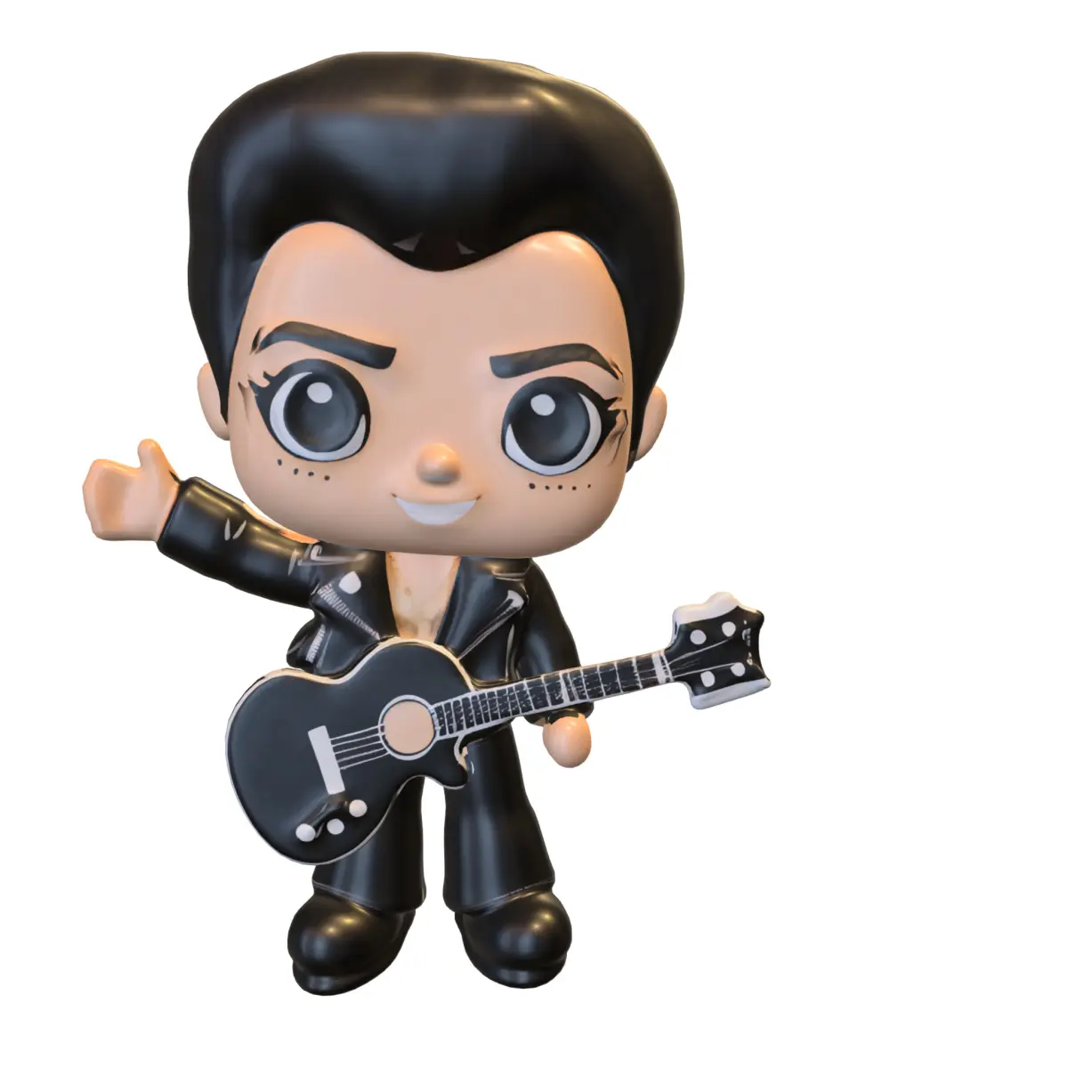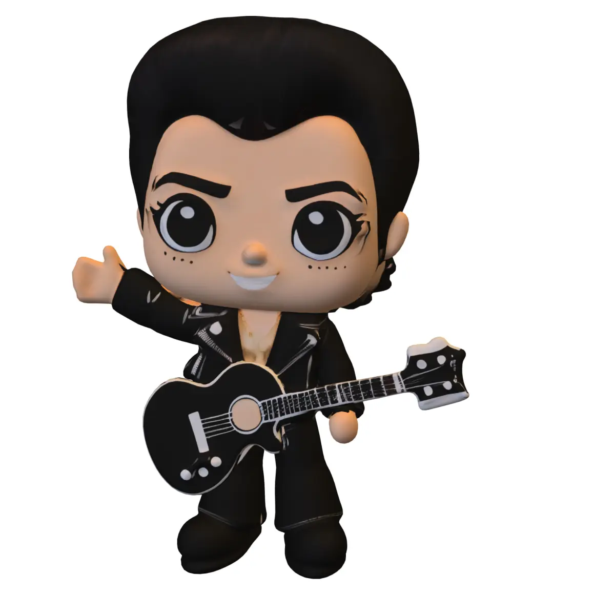 This 3D stylized character model features a charming chibi-style rockstar with a slick hairstyle, shiny black leather outfit, and an iconic black guitar. Designed with expressive facial features and a welcoming pose, this model is ideal for integration into games, animations, or collectible environments. Whether used as a main character, NPC, or digital collectible, this asset fits perfectly in creative and stylized game projects. Fully compatible with Unity, Unreal Engine, and other popular platforms.