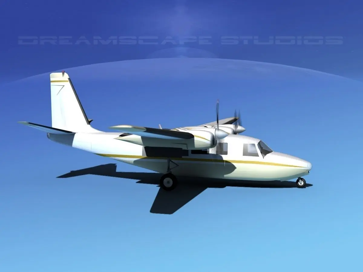This model was built very near to scale within a couple of percent of actual general dimensions. Model includes both exterior and interior detail. The basic cockpit is modeled including some of the instrument, electrical panels, and seats.The passenger cabin includes interior walls, floor and seating all for rendering from exterior through windows. The model has a lot of animateable features including ailerons, flaps, elevator, rudder, propellers, landing gear, and landing gear doors. The landing gear may be retracted or hidden for flight animations. The propellers are animated.