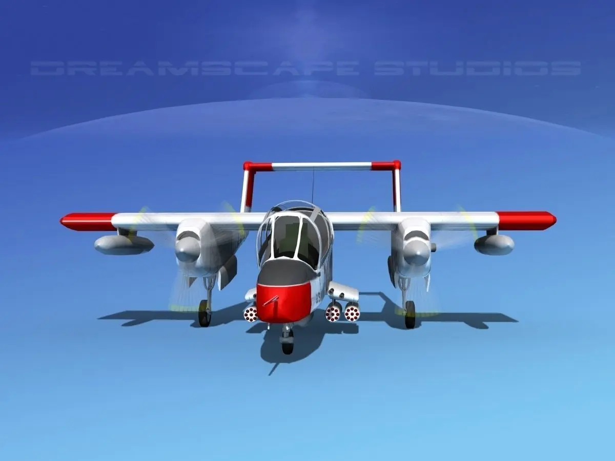 The model was built near to scale in real units and based on real dimensional information, drawings, photos, and other documents. It was recently upgraded and updated with better textures, better geometry for much of the model and better renderings. This model includes animated propellers, animateable ailerons, flaps, elevators, landing gear, landing gear doors. It comes in several variants including the US Army basic version, USAF version, US Marines, NASA and two other air force versions. The models come in 8 formats, all the ported formats are prepared well to work correctly with every standard modeling software. The model is fully textured with all materials UVW mapped and applied. Most materials are planar mapped and major materials include texturing. All textures and materials are included as shown. 3ds Max model parts are grouped for easy selection, and objects are logically named for ease of scene management. No cleaning up necessary, just drop your models into the scene and start rendering. No special plugins are needed to open scene. In most cases the liveries are based on actual service liveries or paint schemes. Many of the countries who flew the plane are represented here. These models render very well and look very realistic using good animation and rendering technique. It can be used in an animated or static position within an animated video or possibly for programming for a flight simulation application. This model was not designed for 3d printing, these are digital files only. The North American Rockwell OV-10 Bronco was an American military light armed observation and COIN fighter, designed in the 1960s. It had twin Garrett T76-G-410/412 Turbo Prop turning a thee blade variable pitch propeller. They were crewed by a pilot and weapons controller/ observer. It was operated by the United States, Malaysia, United Kingdom, Thailand, Indonesia, Germany France, Philippines, and Belgium.
