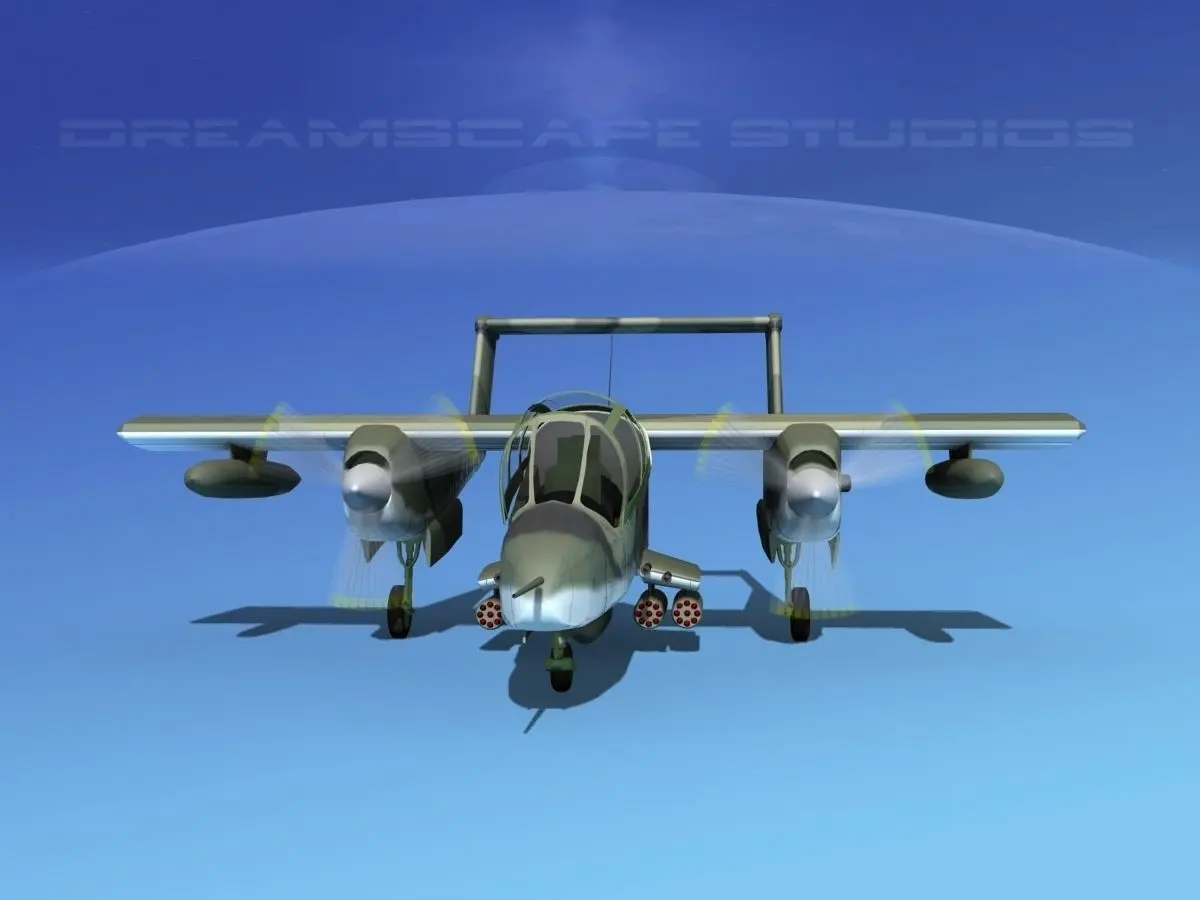 The North American Rockwell OV-10 Bronco was an American military light armed observation and COIN fighter, designed in the 1960s. It had twin Garrett T76-G-410/412 Turbo Prop turning a thee blade variable pitch propeller. They were crewed by a pilot and weapons controller/ observer. It was operated by the United States, Malaysia, United Kingdom, Thailand, Indonesia, Germany France, Philippines, and Belgium.
