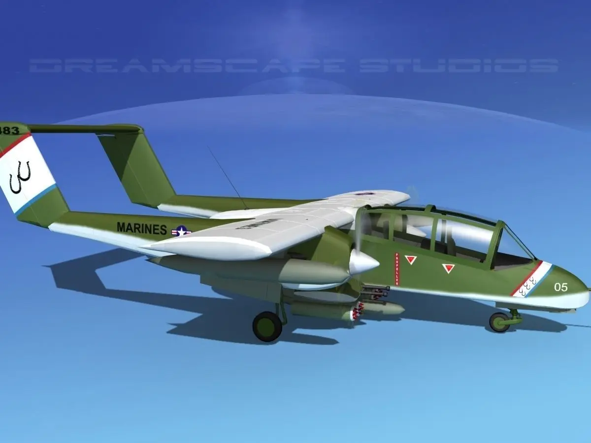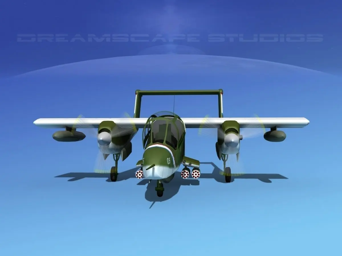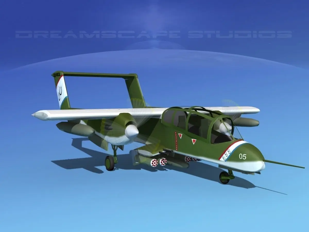 The North American Rockwell OV-10 Bronco was an American military light armed observation and COIN fighter, designed in the 1960s. It had twin Garrett T76-G-410/412 Turbo Prop turning a thee blade variable pitch propeller. They were crewed by a pilot and weapons controller/ observer. It was operated by the United States, Malaysia, United Kingdom, Thailand, Indonesia, Germany France, Philippines, and Belgium.