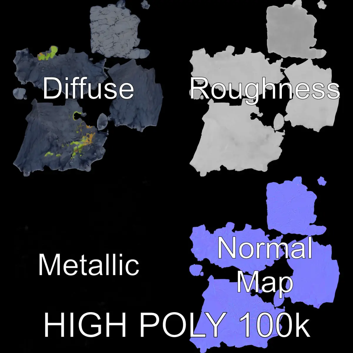 The Rocky Cliff with Grass model pack features three levels of detail, making it versatile for various applications. Perfect for nature scenes, game environments, or architectural visualizations, this model provides a realistic representation of a rugged rock formation with patches of grass. With PBR textures, including Diffuse, NormalMap, and reflection/roughness/metallic, it fits seamlessly into any modern rendering engine. Models are unwrapped without overlapping UVs and textures are sized at 4096x4096, ensuring high-quality visuals.
