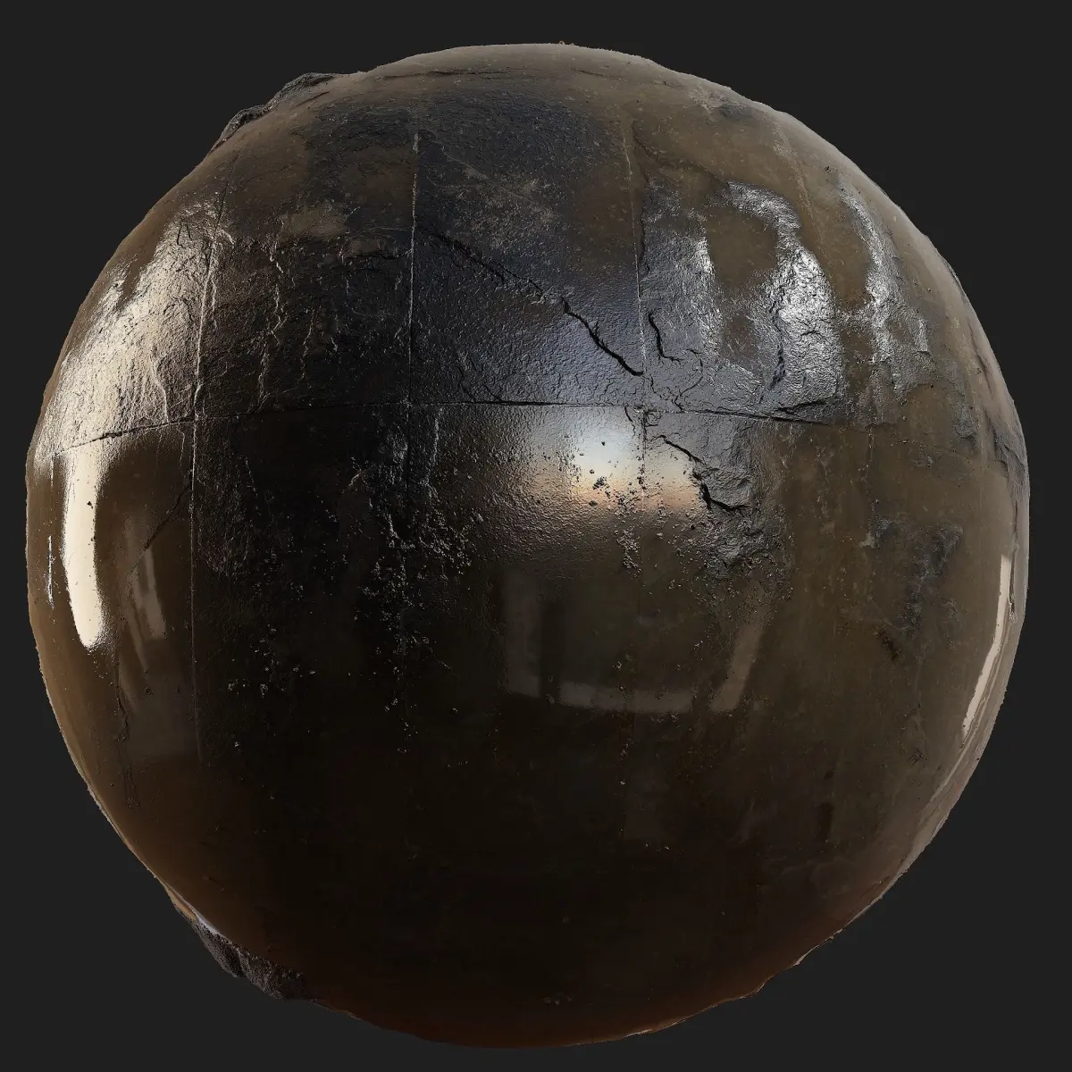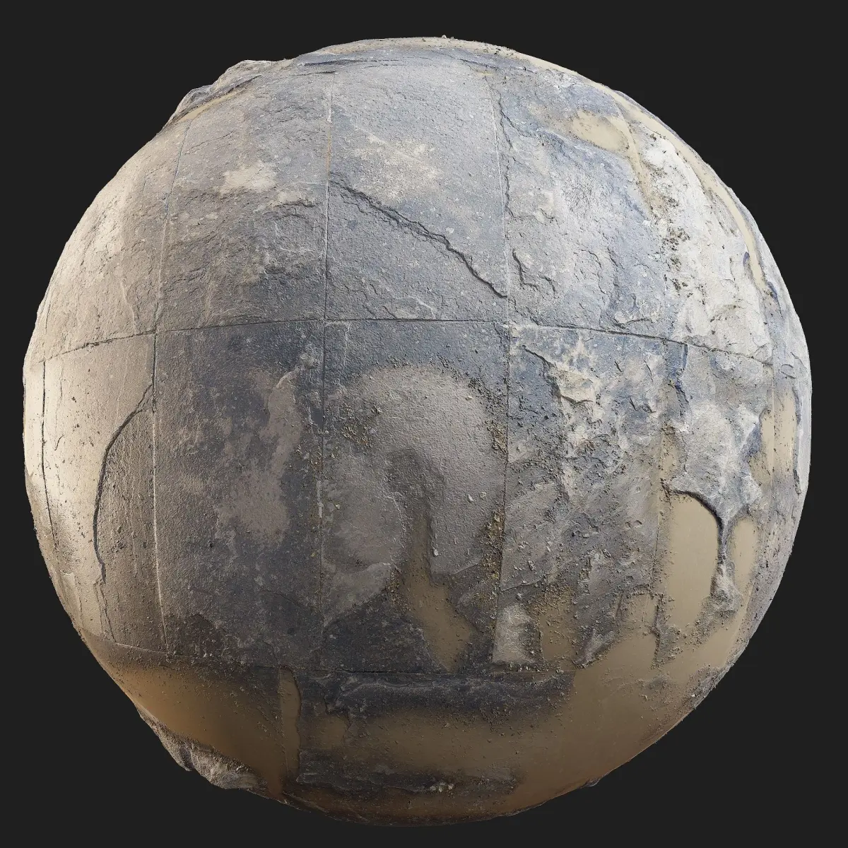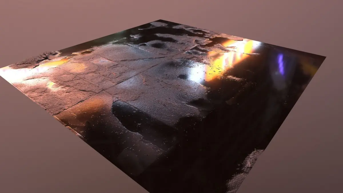 The texture is rendered in 3 different situations: Dry, during a rainy day and after the sunshine has come out after the rain and the stones are drying up.