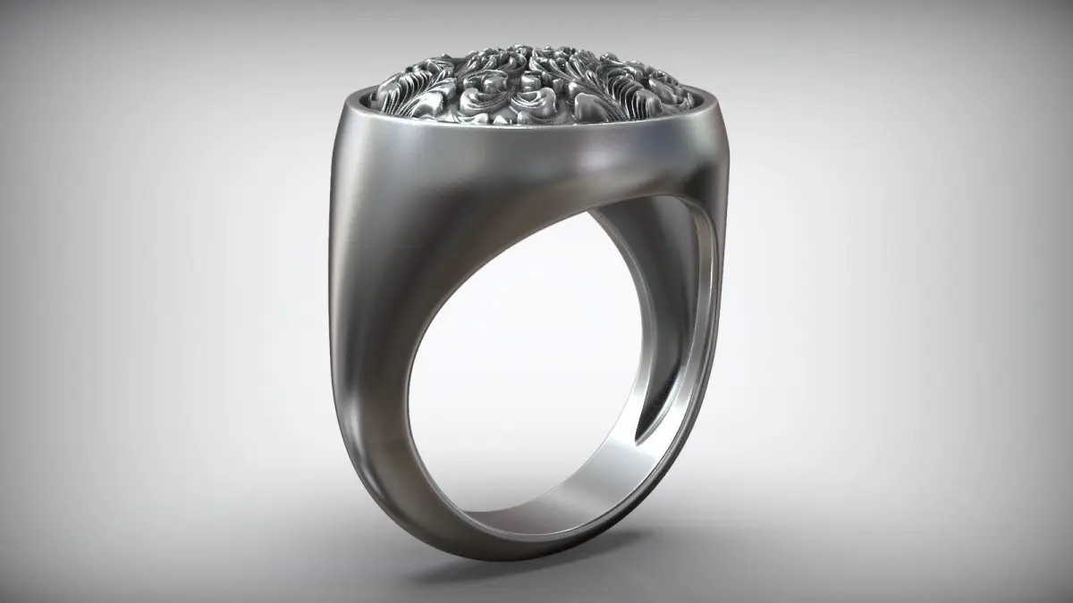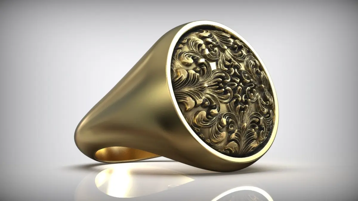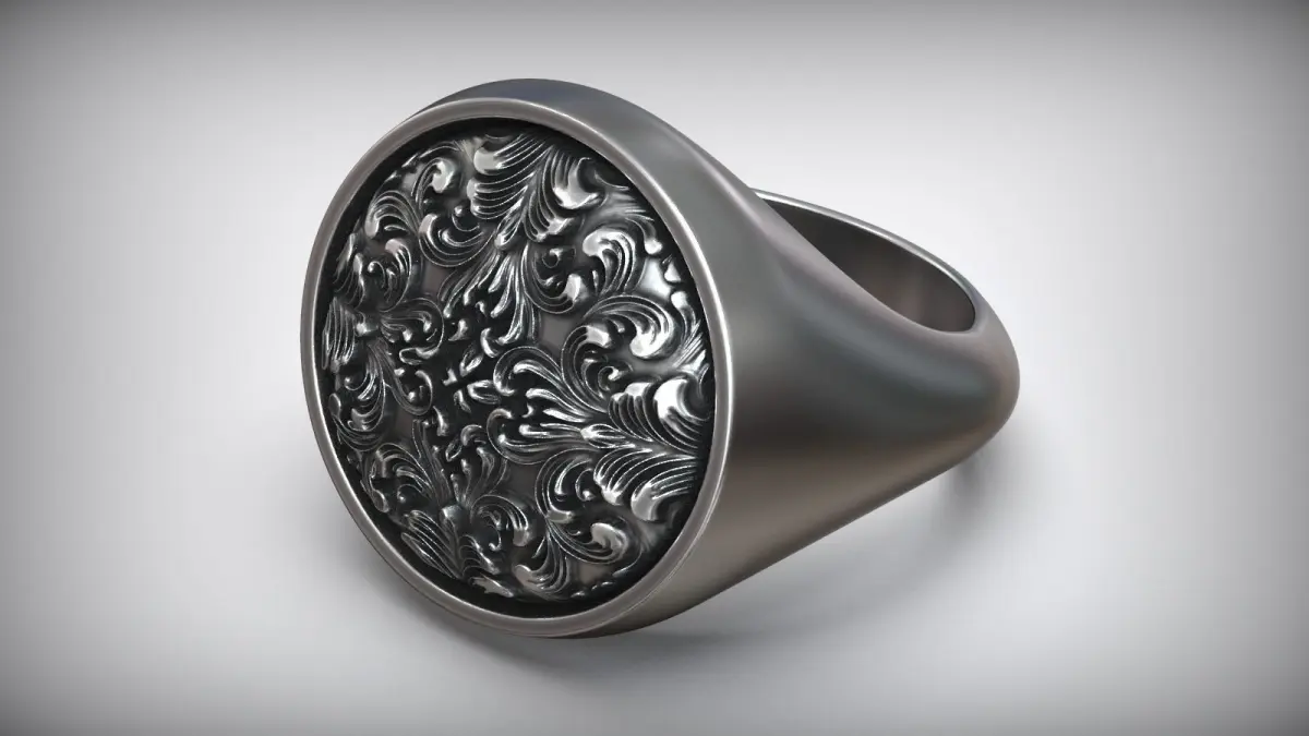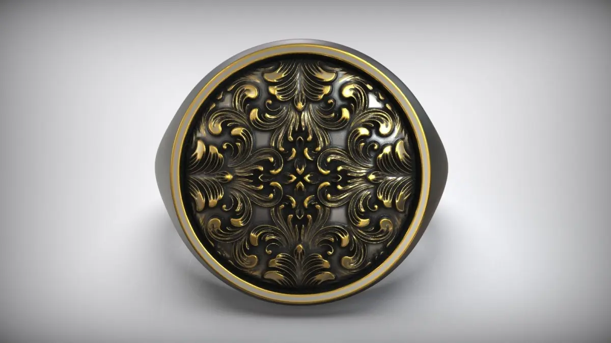 Round Signet Rococo Floral Rocaille Pattern