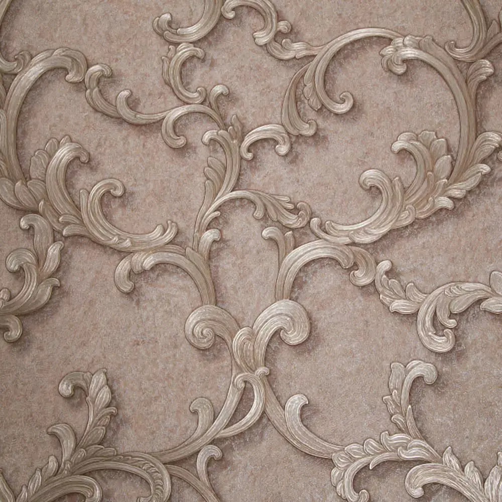 What’s includedSeamless wallpaper with flowing rococo scrolls on a warm blush‑taupe ground, ideal for elegant feature walls and boutique interiors.