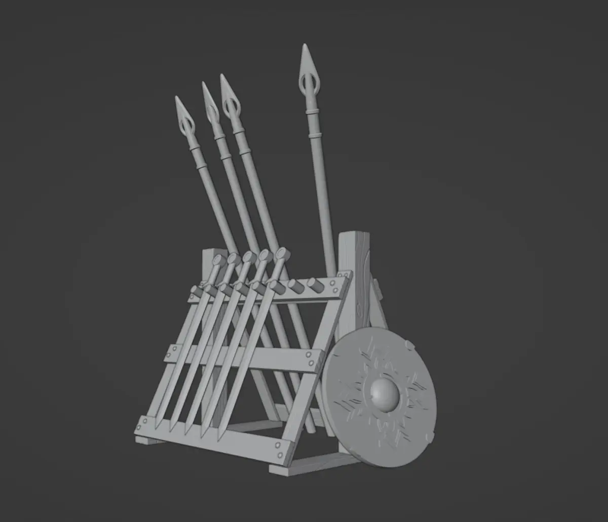 I've created a weapon rack for Rohan soldiers to enrich my LotR miniature battlefield a bit more.
