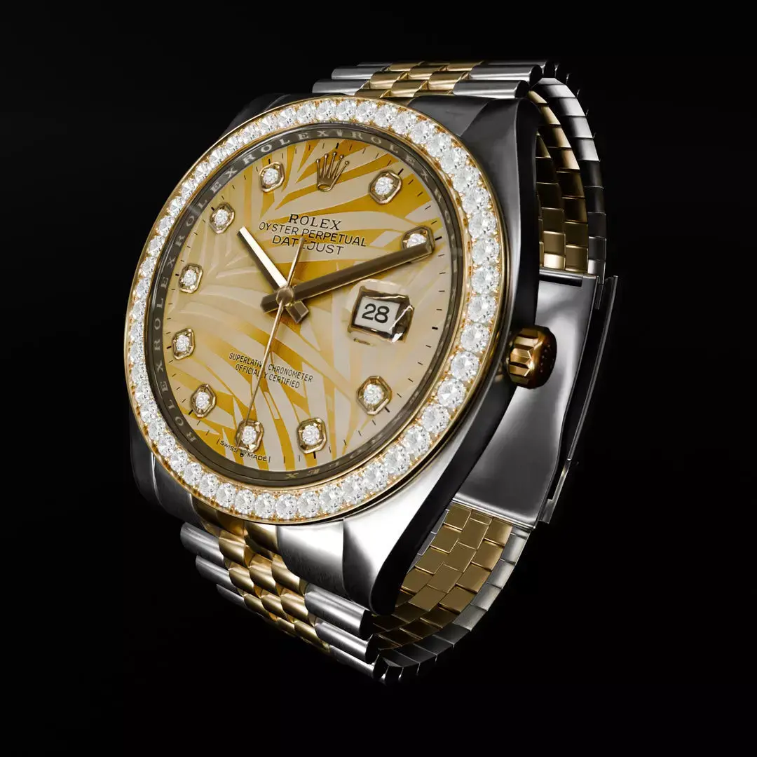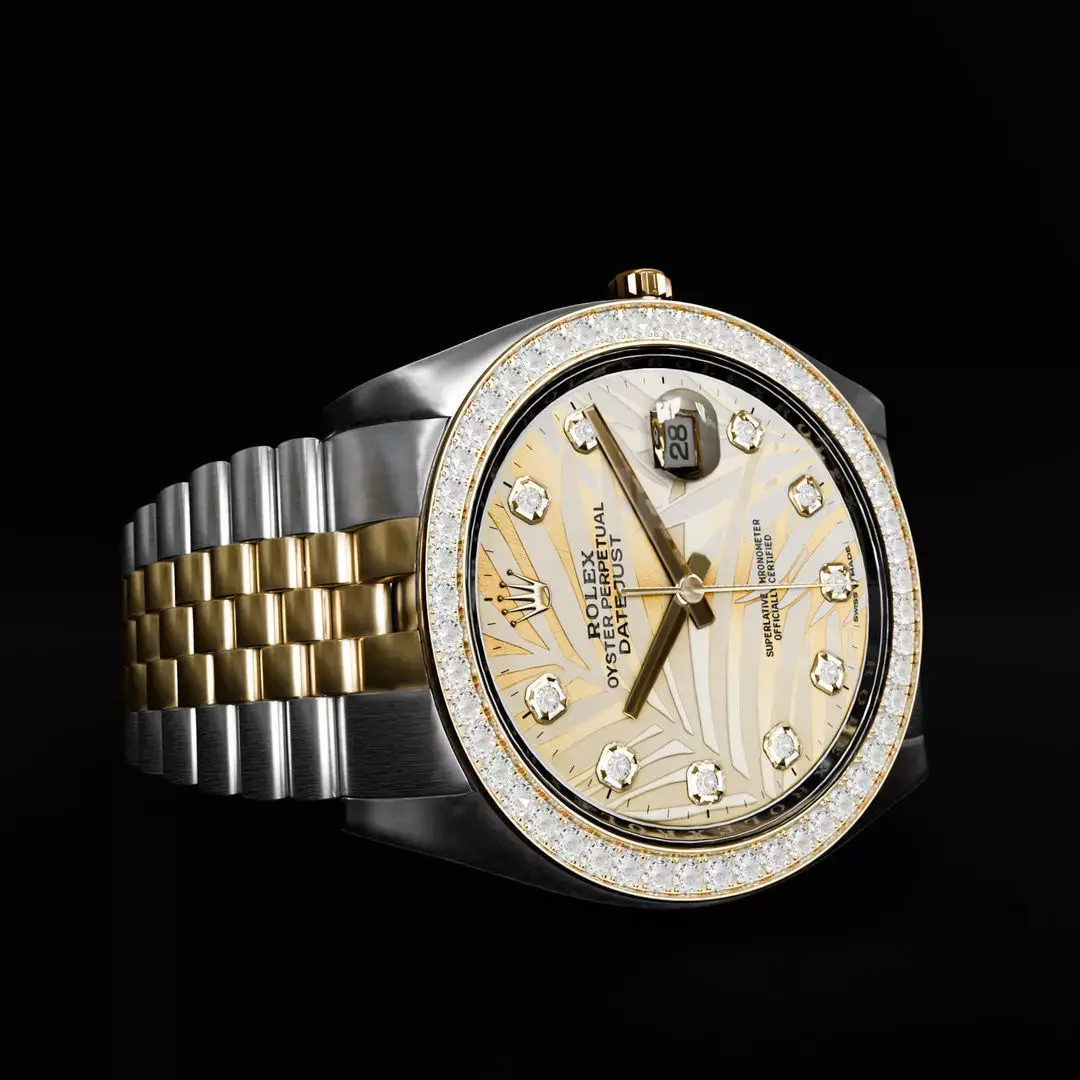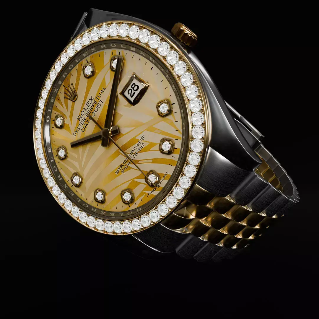 This game-ready ROLEX Datejust 36 Golden Palm Diamond Jubilee model includes 263,559 triangles and a pbr, high-quality texture set. It is optimized for real-time use and ideal for games, cinematics, AR/VR experiences, and product visualization. The model features clean topology, realistic materials, and high-quality baked textures, making it suitable for Unity, Unreal Engine, and other real-time rendering pipelines.