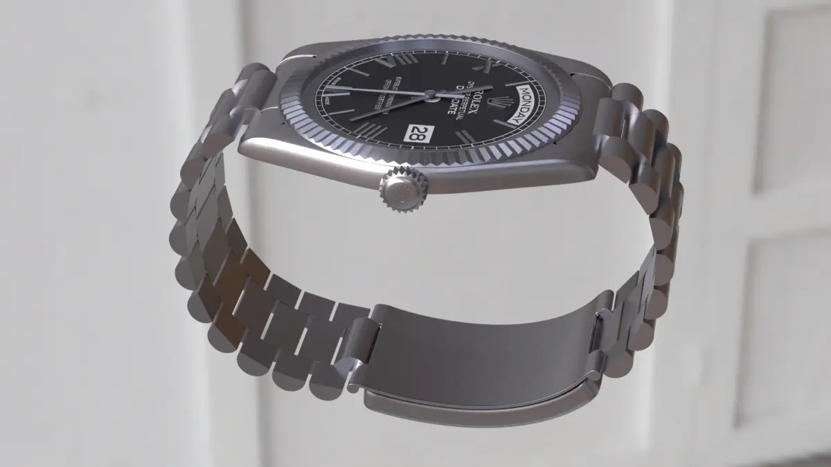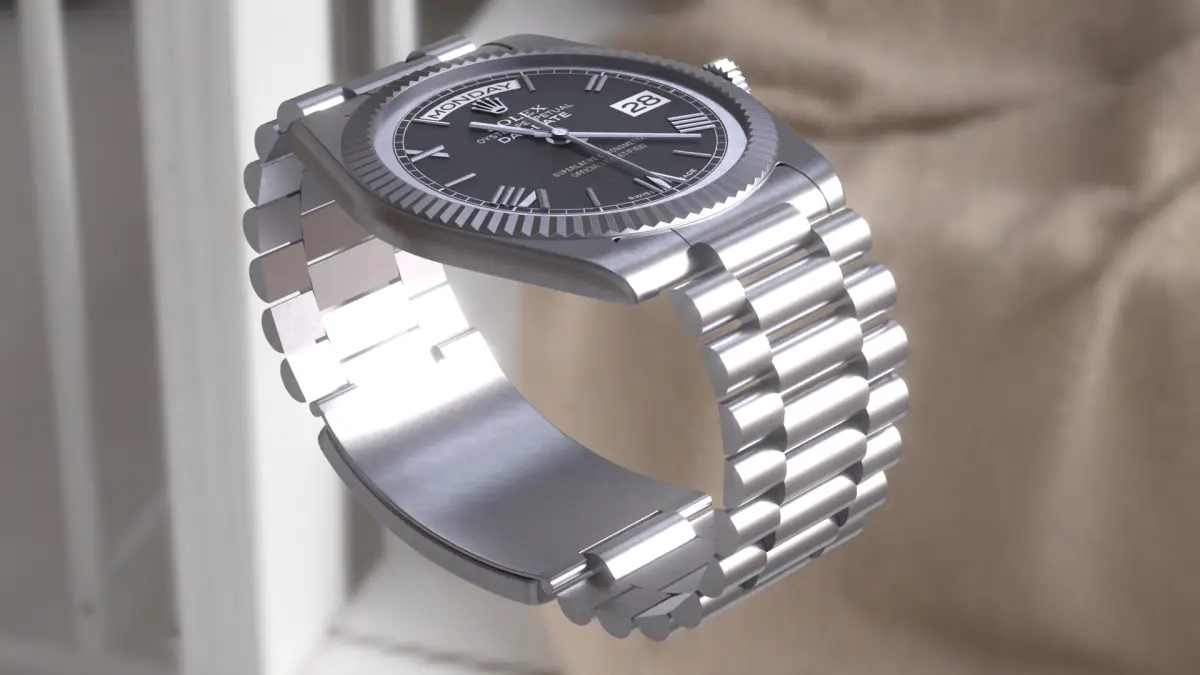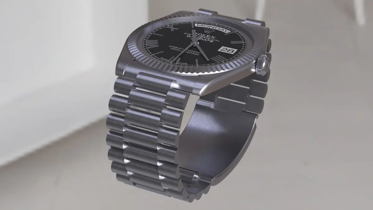Rolex Day-Date 40 – 3D ModelHigh-quality Rolex Day-Date 40 3D model, fully created in Blender. Ideal for product visualization, luxury scenes, and animations.
