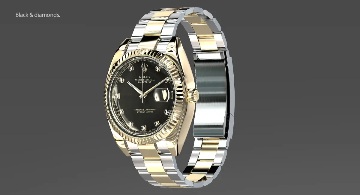 Products made with equal scale. The unit of measure: mm., millimeters. Rolex watch modeled and rendered in 3ds Max 2012 and V-Ray 2.30. Model unwrapped. Textures and V-Ray materials included. Very small polycount: only 15080 polygons and 15046 verticies.