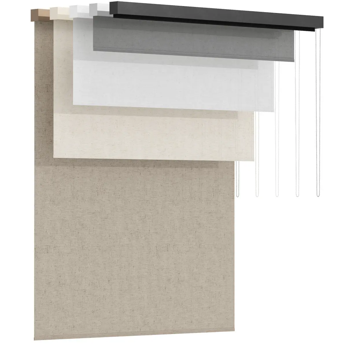 There are 20 objects of Roller Blinds in the archive. 4 types of width. And 5 opening positions. 5 materials with different colors.