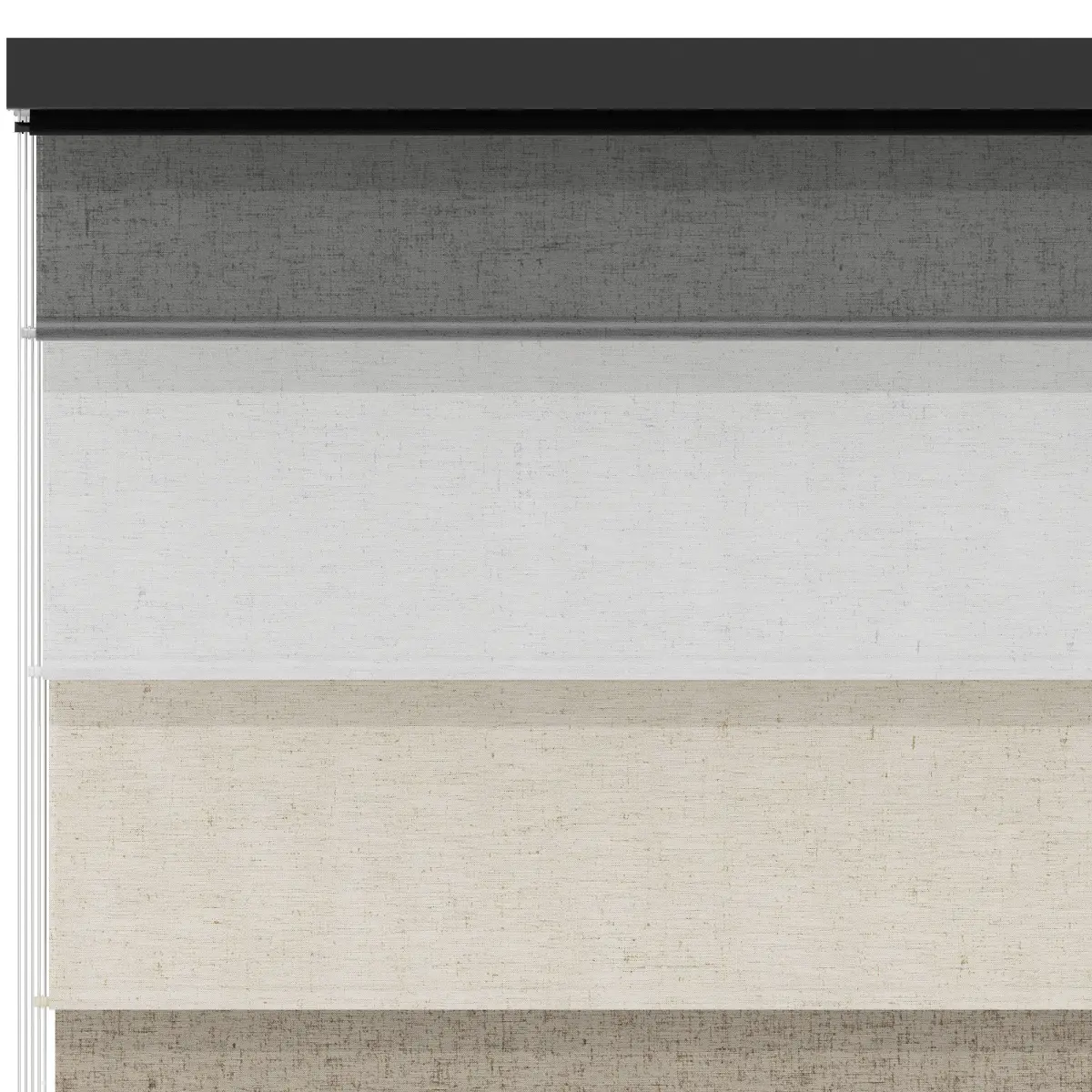 Roller Blinds Bandalux. Set 03.Type 03: Bracket - Q-Cassette. Optimal guide systems - Cable lateral guides. Operating system - Chain. Bottom hembars - Round fabric wrap.Type 04: Bracket - Q-Cassette. Optimal guide systems - Aluminum side channels. Operating system - Chain. Bottom hembars - Mini Plain.