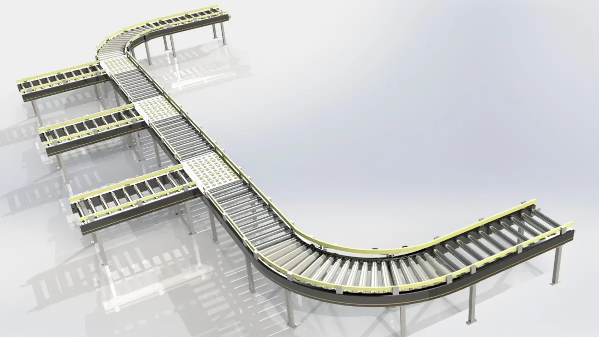 Interroll R335015 DE30 RM8310 Roller Conveyors Straight 24V PolyVee and Interroll R335018 DE30 RM8320 Roller Conveyor Curve 24V Assemblies and Interroll R335880 DE30 RM8140 OmniWheelTable and RM8130 BallTable 1 1