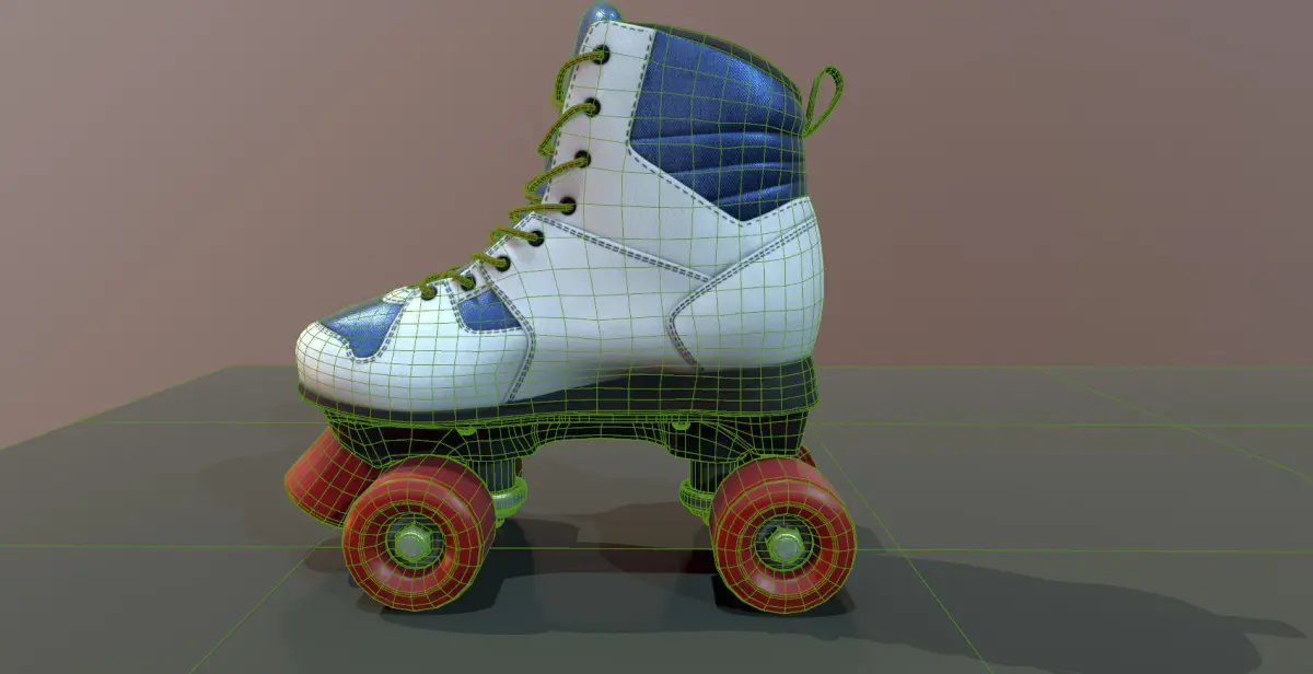 A retro roller skate model. (Mirror copy it and you have a pair... don't forget to flip the normal map's green channel for the mirrored skate material!)