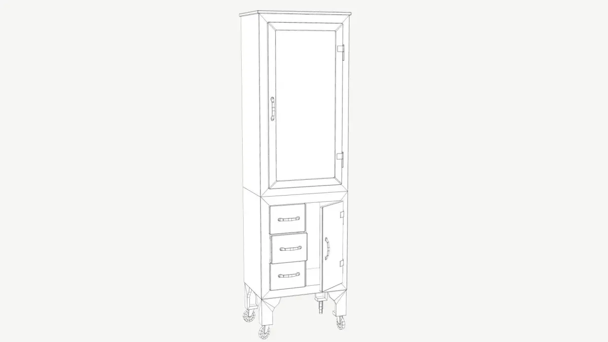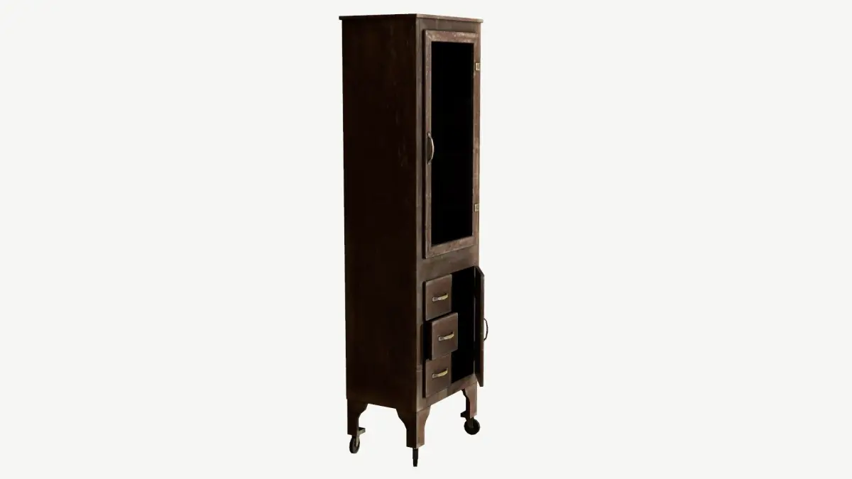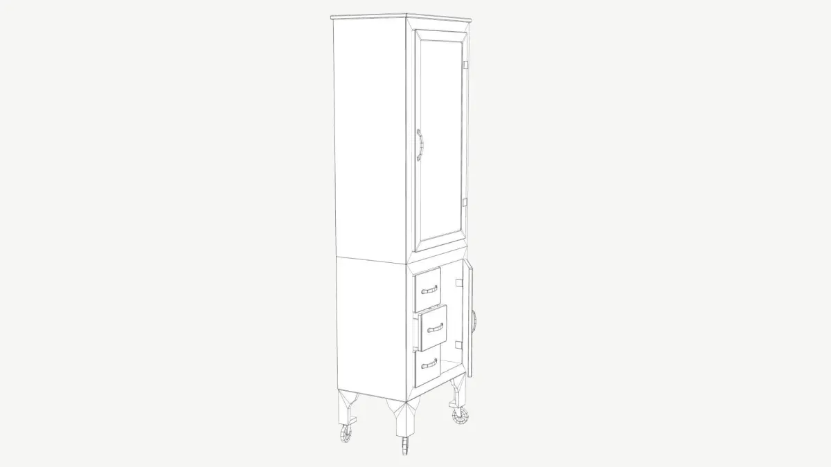 An antique, derelict rolling cabinet. Great for a period set or to add a dark or mysterious mood to a game set.