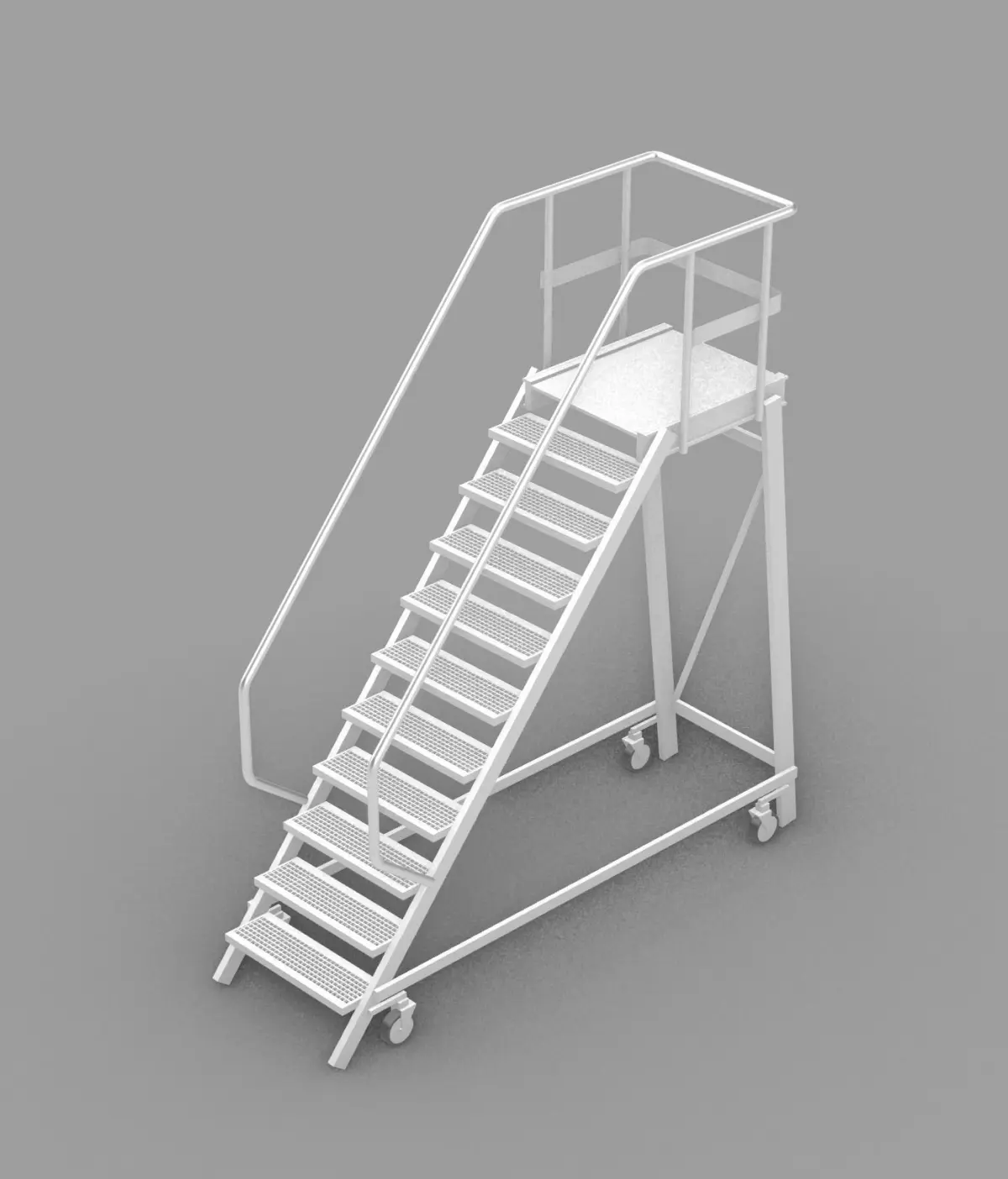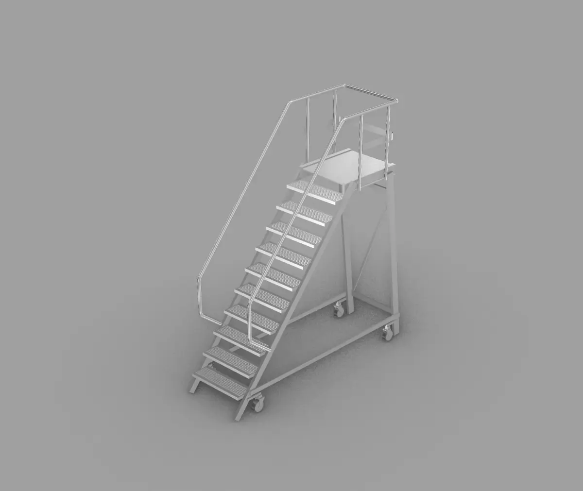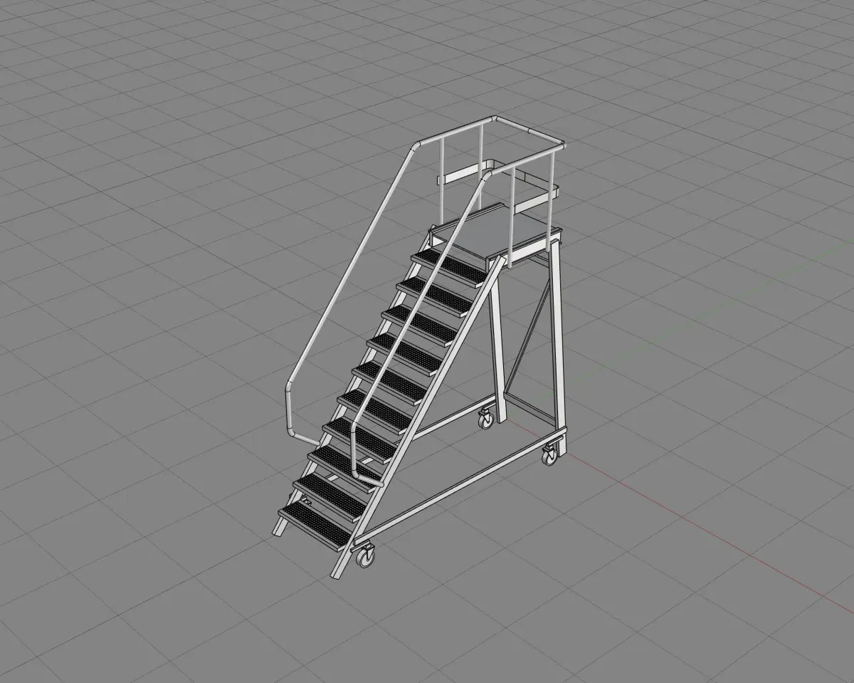 Rolling ladder used in construction. Steep set of stairs on rolls.