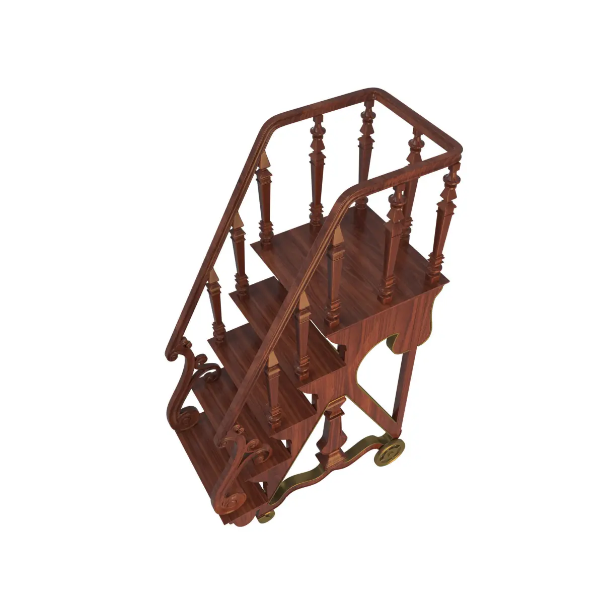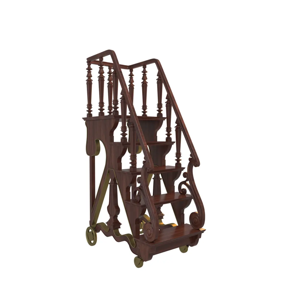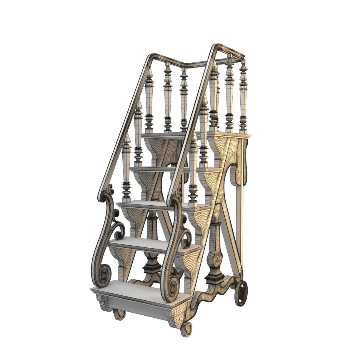 Vintage wooden movable Library Stairs whith casters modeling in 3ds Max 2018.