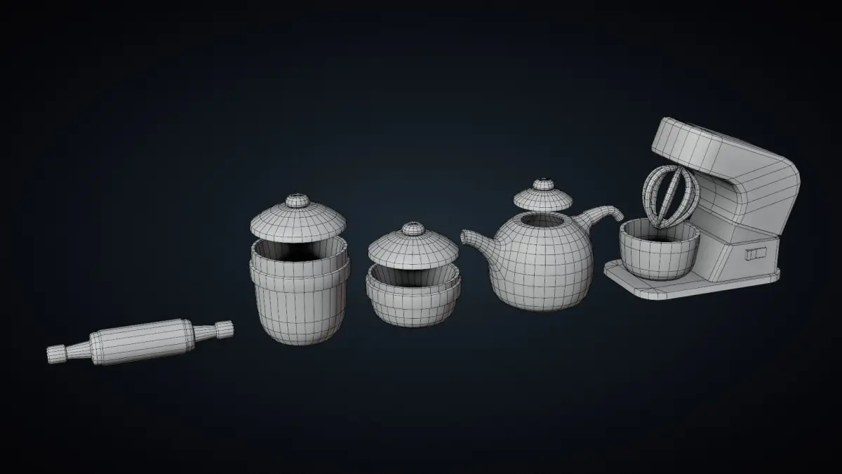 This is the part 11 of my Stylized Kitchen Pack, featuring a kitchen roller pin, vessel, kettle and mixer.