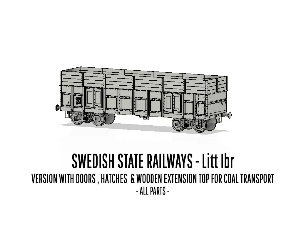 *** This 3D-set requires a minimum print surface length of 190x60mm of your resin 3D-printer***Full set of STL-files to build a Swedish State Railway Gondola type Ibr in H0-scale as per state 1963. Runs well on both 2- and 3-rail systems.The car is equipped with standard sized NEM-pockets, which allows for any NEM-couplings of your choise.The car is designed to have ideal weight according to NEM-standard directly from print. This means the car runs well both empty and loaded with cargo.Set includes white decals in PDF-format for printing on laser or InkJET type printer using white cartridge.