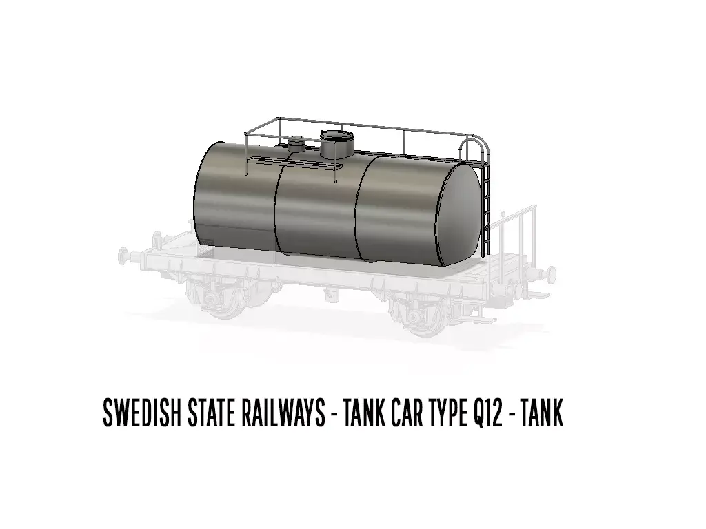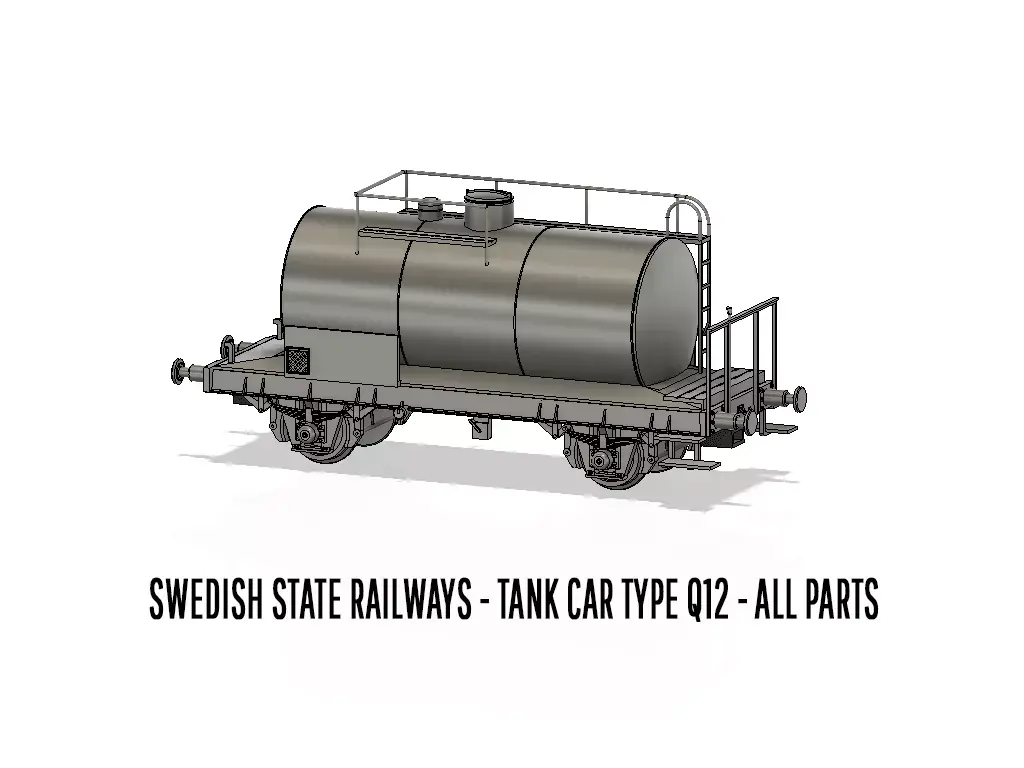 *** This 3D-set requires a minimum print surface length of 170x60mm of your resin 3D-printer***Full set of STL-files to build a Swedish State Railway Tank car type Q12 in H0-scale as per state 1963. Runs well on both 2- and 3-rail systems.The car is equipped with standard sized NEM-pockets, which allows for any NEM-couplings of your choise.The car is designed to have ideal weight according to NEM-standard directly from print.