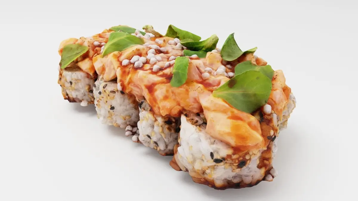 Rolls with tuna salmon and cornsalad or lambs lettuceThis is an optimized 3D model with baked normal and other maps from 3D scan. Perfect for GPU rendering, use in Real-time engines, games etc.The resolution for each map is 4096x4096. You may find a source 3D scan model in our products list.Please check our other products and make sure you didn't miss collections and assets with similar type of objects to get better price offer with buying them as a collection.