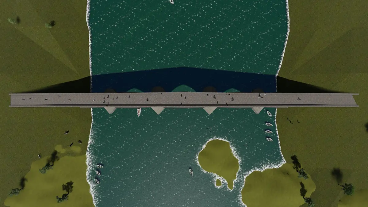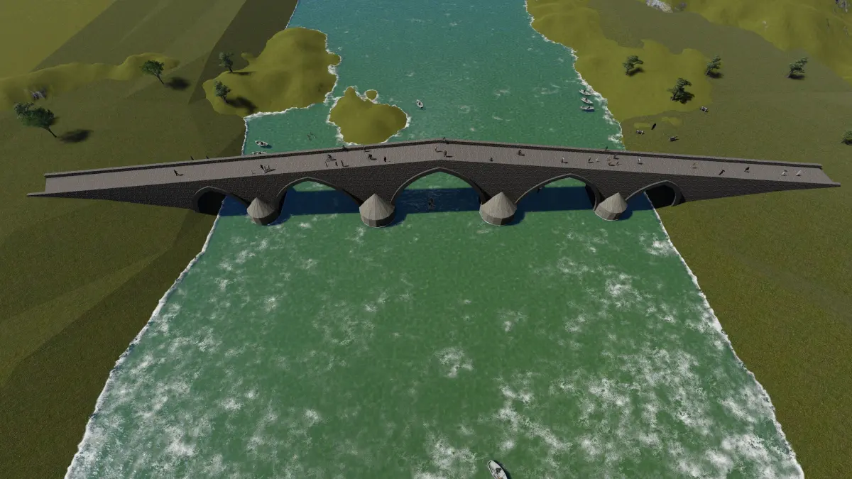 It is four pillars and a beautiful arch based on the northern and southern pillars, its opening is estimated at 21.6 meters and its height is 12.35 meters. It is built with regular dimensional stone courses, and in the southern pillar of the arch and from the east and on the eight sides