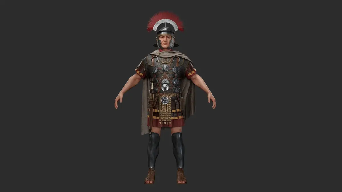 Highly detailed and historical correct Roman Centurion soldier model of the period of Augustus (Late Roman).I am happy to present it to your liking as the first model of a large set. The first member of the party consists of 3 soldiers in the first stage, the set will grow over time and new models and daily tools of the period will also be added.