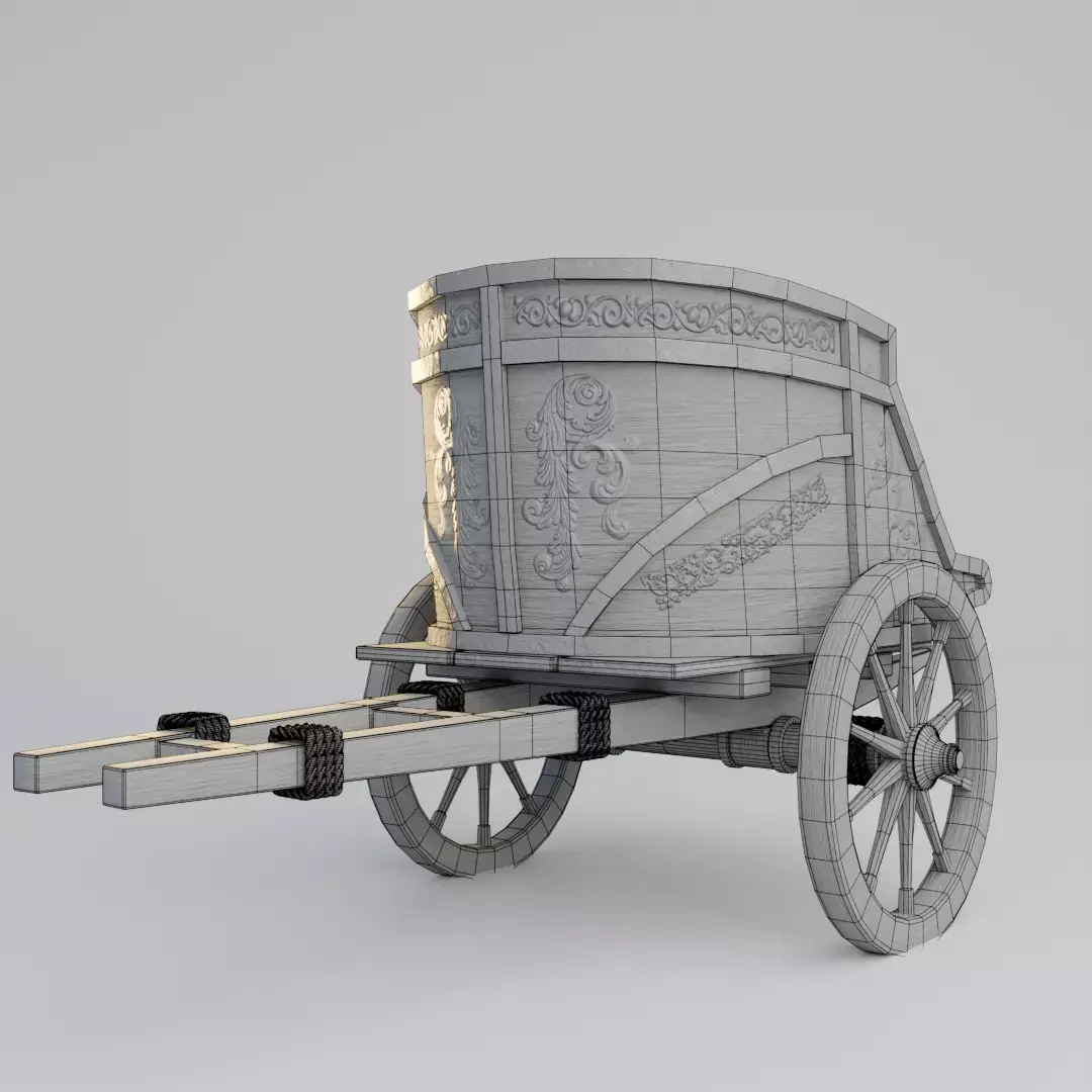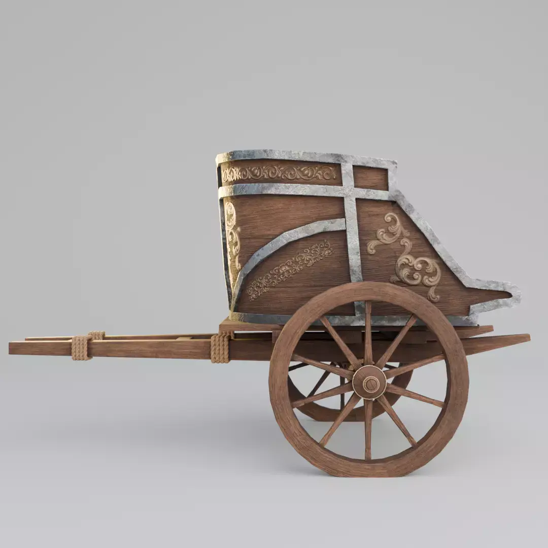 Built with clean topology and realistic material definition, this chariot is suitable for both close-up renders and real-time environments. The included 4K PBR textures capture fine wood grain, aged metal, and ornamental carvings with exceptional realism.
