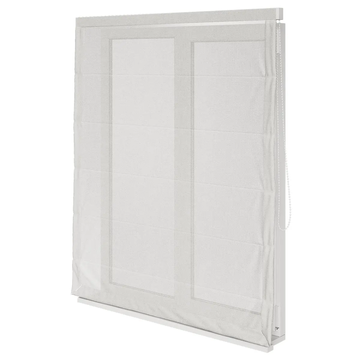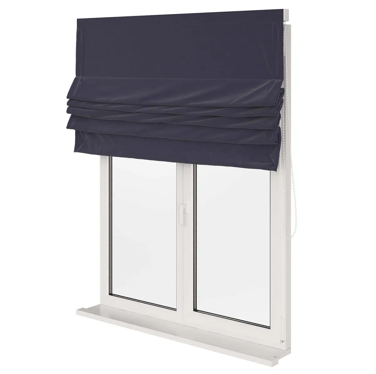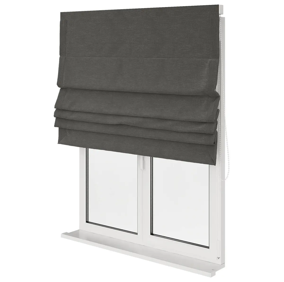 A set of Roman curtains in different positions and colors with a window.