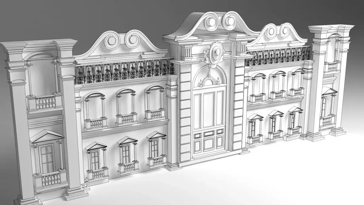 A Roman façade 3D model inspired by classical European architecture, featuring grand arches, fluted columns, and ornate cornice detailing. The design reflects timeless Roman aesthetics with balanced proportions, symmetrical composition, and elegant relief work. Ideal for heritage-style buildings, luxury villas, event backdrops, wedding stages, and historical visualizations, the façade adds a sense of grandeur and authenticity to any scene. The model is accurately scaled with clean geometry and well-organized topology, ensuring efficient performance and high-quality renders. Compatible with major 3D software and rendering engines, it supports detailed materials, textures, and realistic lighting for cinematic architectural presentations.