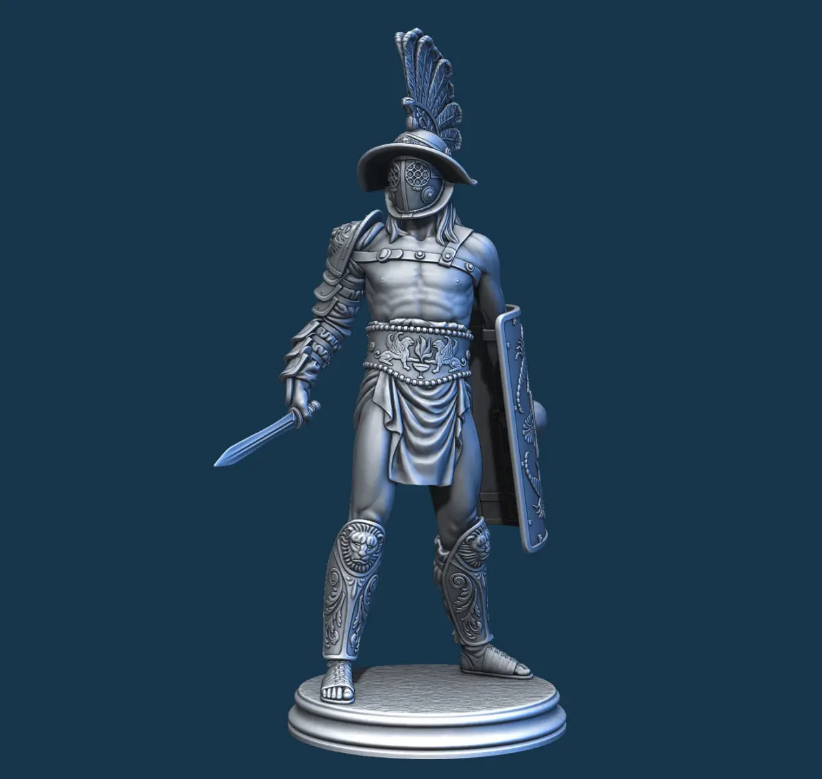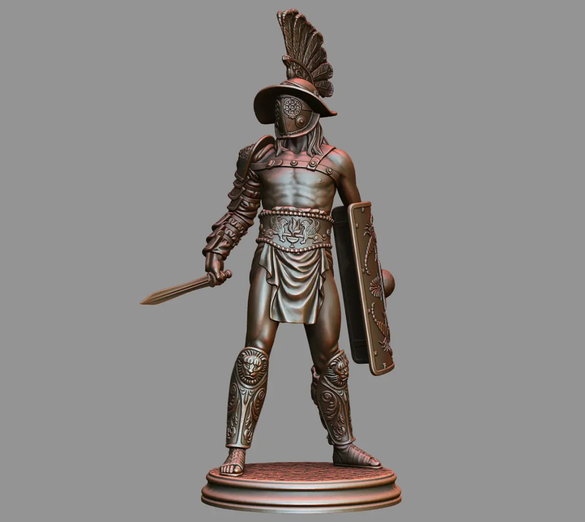 3D printable miniatures of Gladiator in 5 parts (stl) Added model of the combined parts (obj)The high resolution model can be scaled to the size you need.The figure is 15 cm tall.