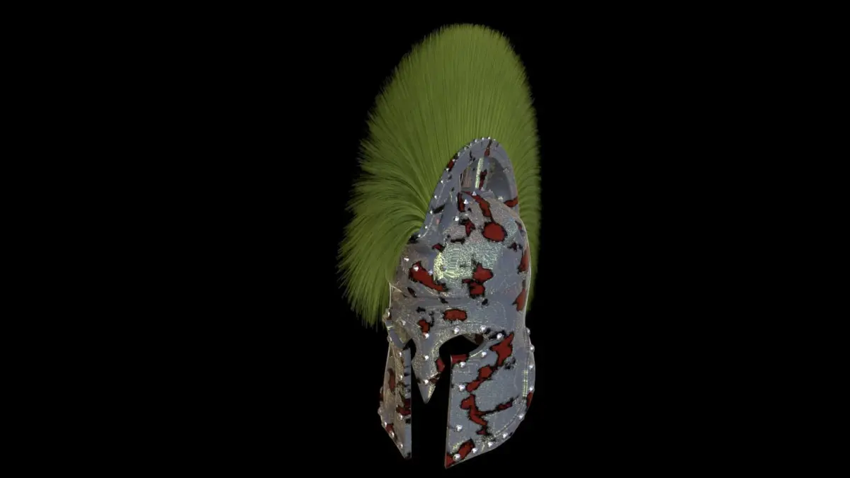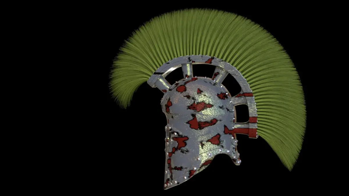 Roman helmet, with its tuft and rusty metal.Made with cinema 4d, the hairs are generated with the Hair module. On the other hand, they are in polygonal for the OBJ, FBX and STl version, which explains the substantial size of the file.