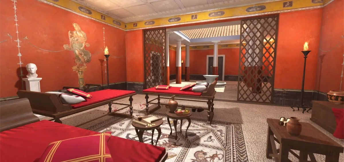 Interior of an antique Roman room with tradicional furniture and objects of that age originally created for Unity. In the scene we can find a living room that leads to a patio. The walls and floor are decorated with real old Roman images. The FBX models and textures are included separately to be used in other 3D apps. (If you are not using Unity, you will have to assemble the scene in the program you are using for it). All the models are low-poly to be used in games and applications. A version created and configured in unity for VR Oculus Quest 2 is included.