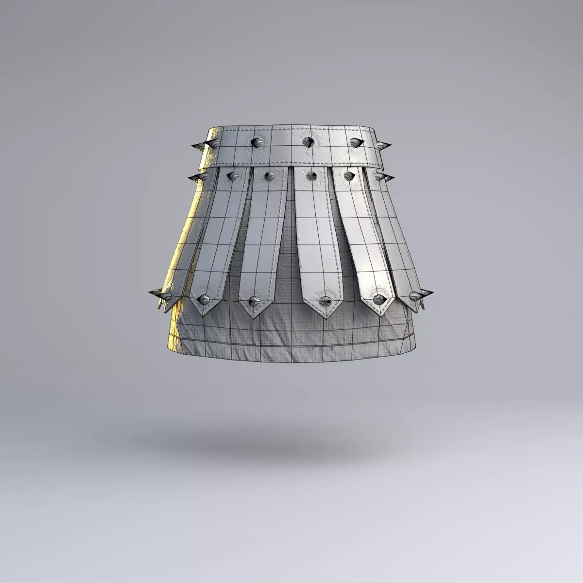 This is a high-quality Roman pteruges skirt, commonly worn by Roman soldiers beneath armor for protection and mobility. The model features layered leather strips reinforced with metallic studs and spikes, accurately inspired by historical Roman military gear.