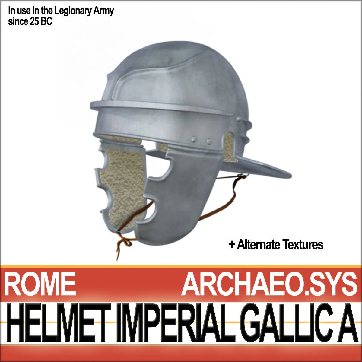 Roman Legionary Army Helmet Imperial Gallic A. With alternate textures. C4D, 3DS, OBJ, OBJ for Poser/Daz, VUE6to12!___________________________________________Roman Legionary Army Helmet Imperial Gallic A.In use in the Legionary Army since 25 BC.It was used both by Roman Infantry and by Roman Cavalry, but generally by Infantry.