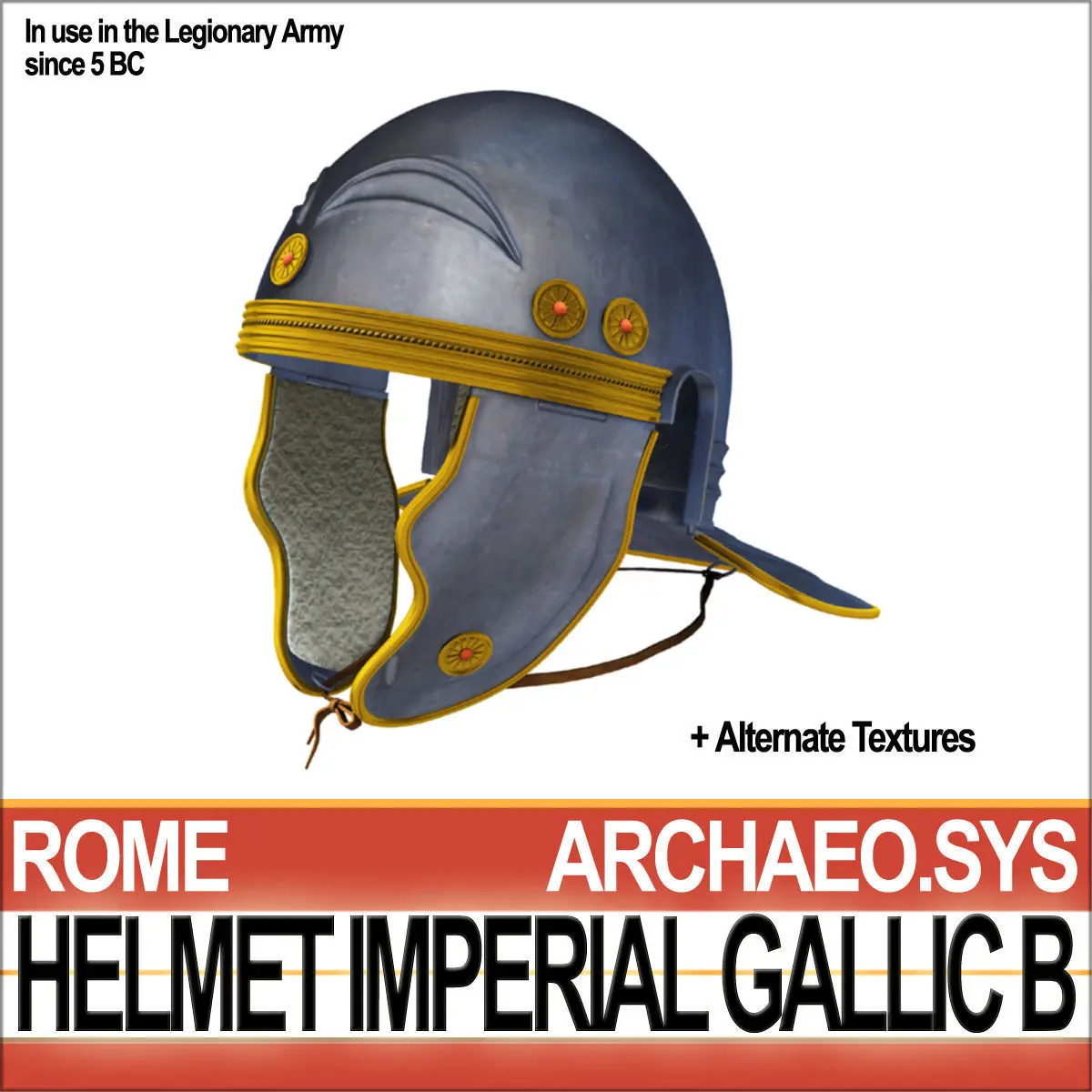 Roman Legionary Army Helmet Imperial Gallic B. With alternate textures. C4D, 3DS, OBJ, OBJ for Poser/Daz, VUE6to12!___________________________________________Roman Legionary Army Helmet Imperial Gallic B.In use in the Legionary Army since 5 BC.It was used both by Roman Infantry and by Roman Cavalry, but generally by Infantry.