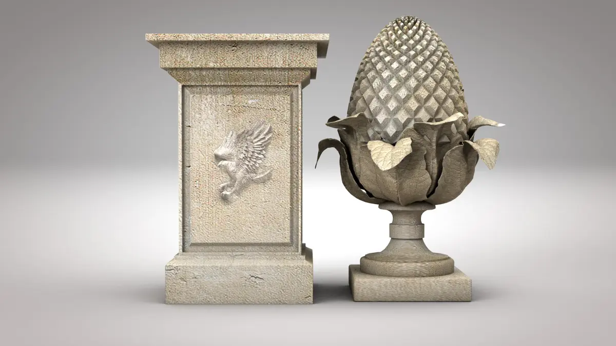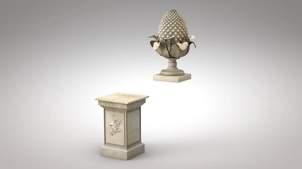 Roman Pine Cone Sculpture is part of the Roman Island collection, it contains the same construction materials to create harmony in the work. Its texture is 4k in UV maps.