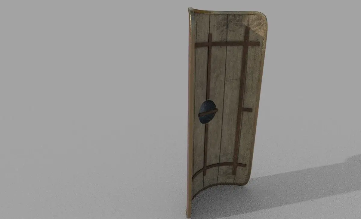 scutum shield modelled after historical refrence..made into seperate meshs in one object...modelled in blender and textured in substance painter... textured in one tecture set including the metal, leather and wooden parts