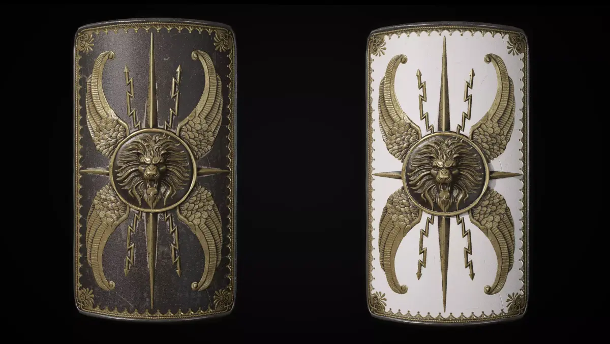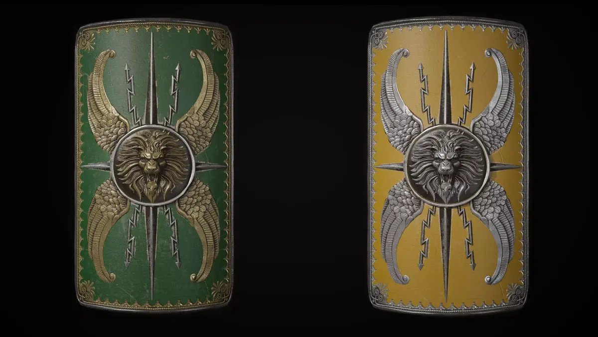 Roman scutum shield with a lion. Suitable for historical and fantasy games. Optimized for modern engines and PBR rendering.