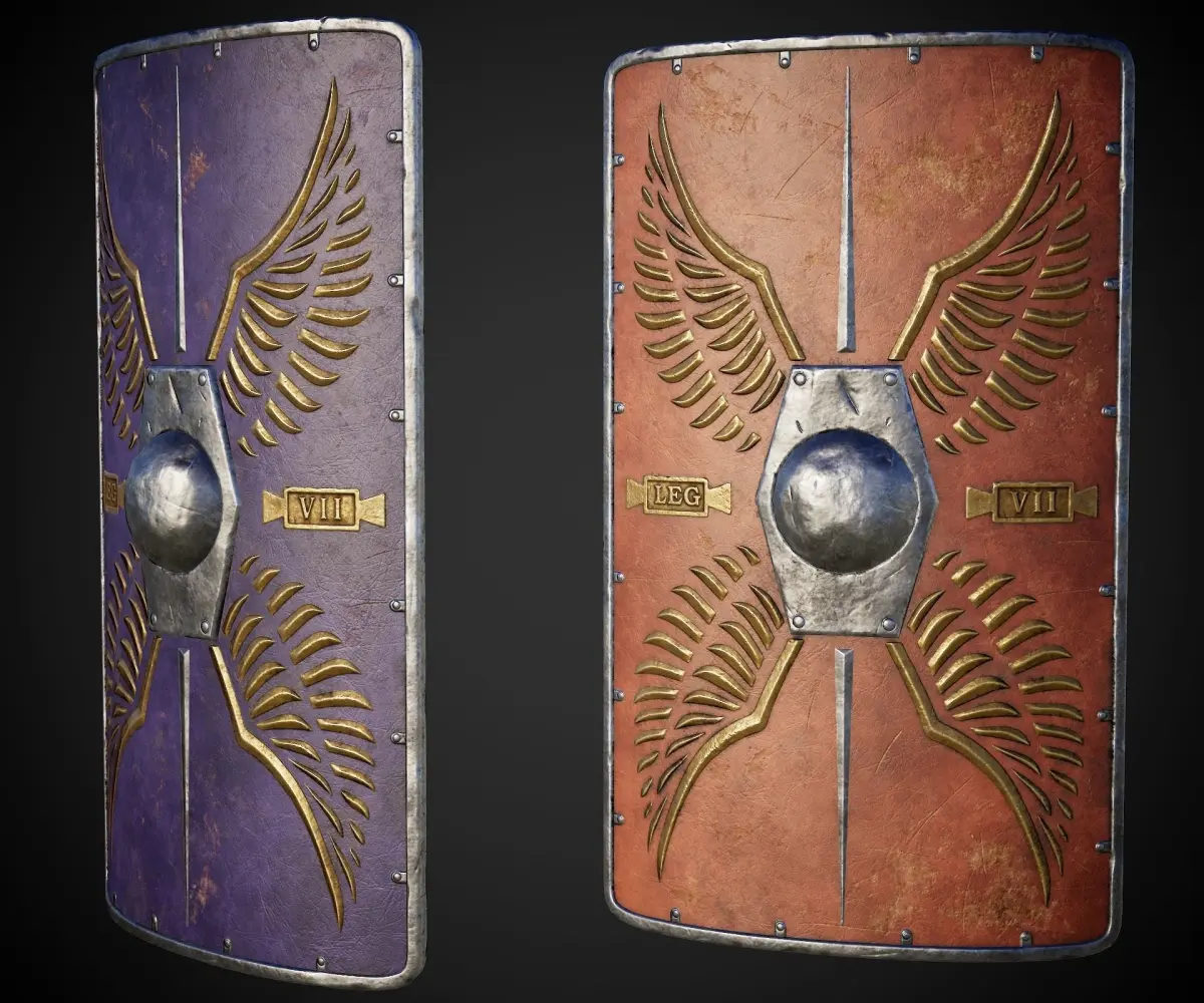 Low Poly Game Ready model of Roman Shield (Scutum) with decorated wings. Real World Scale mesurments.