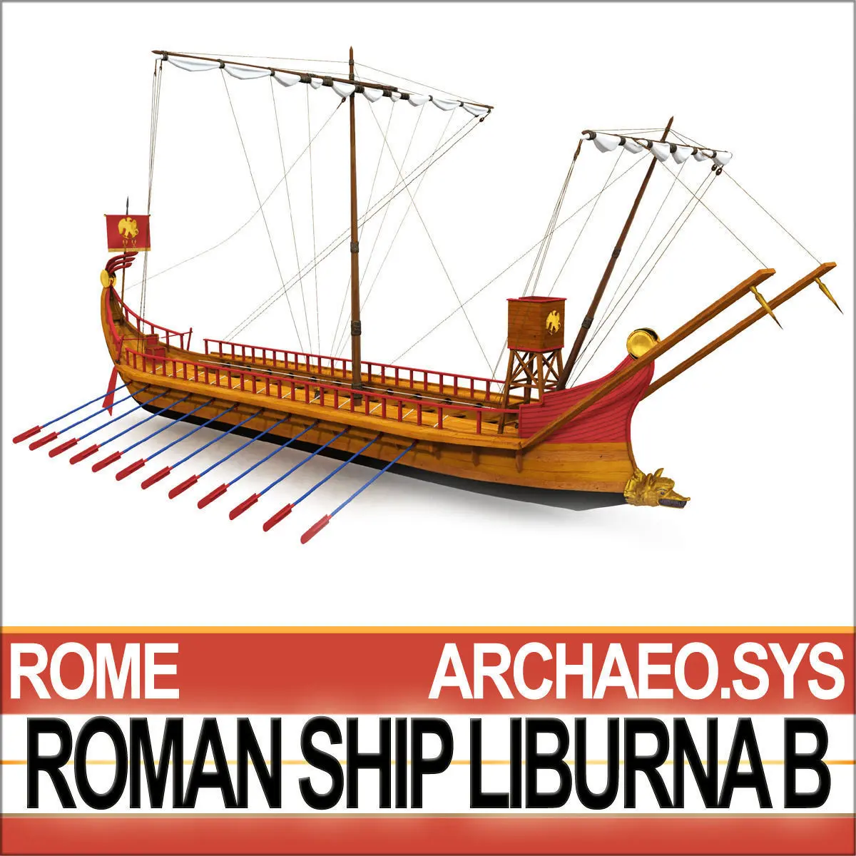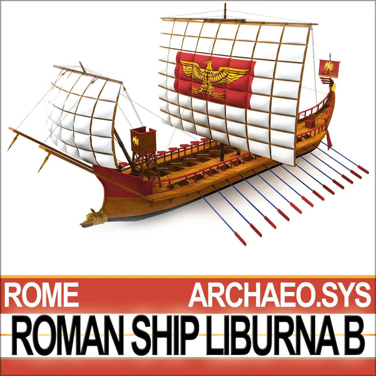Ancient Roman Ship Liburna B, small warship used for close-combat and vessels boarding. Faithful and accurate Reconstruction. C4D, 3DS, OBJ, VUE6to13!