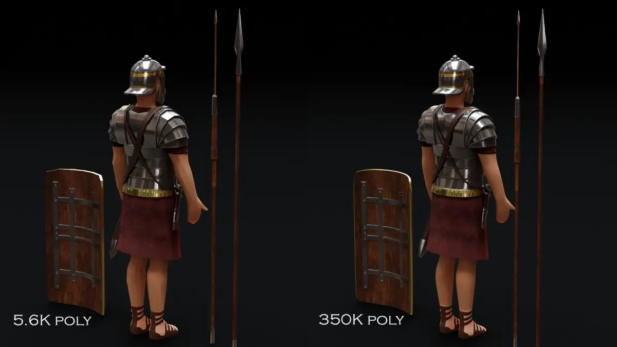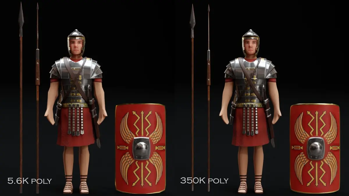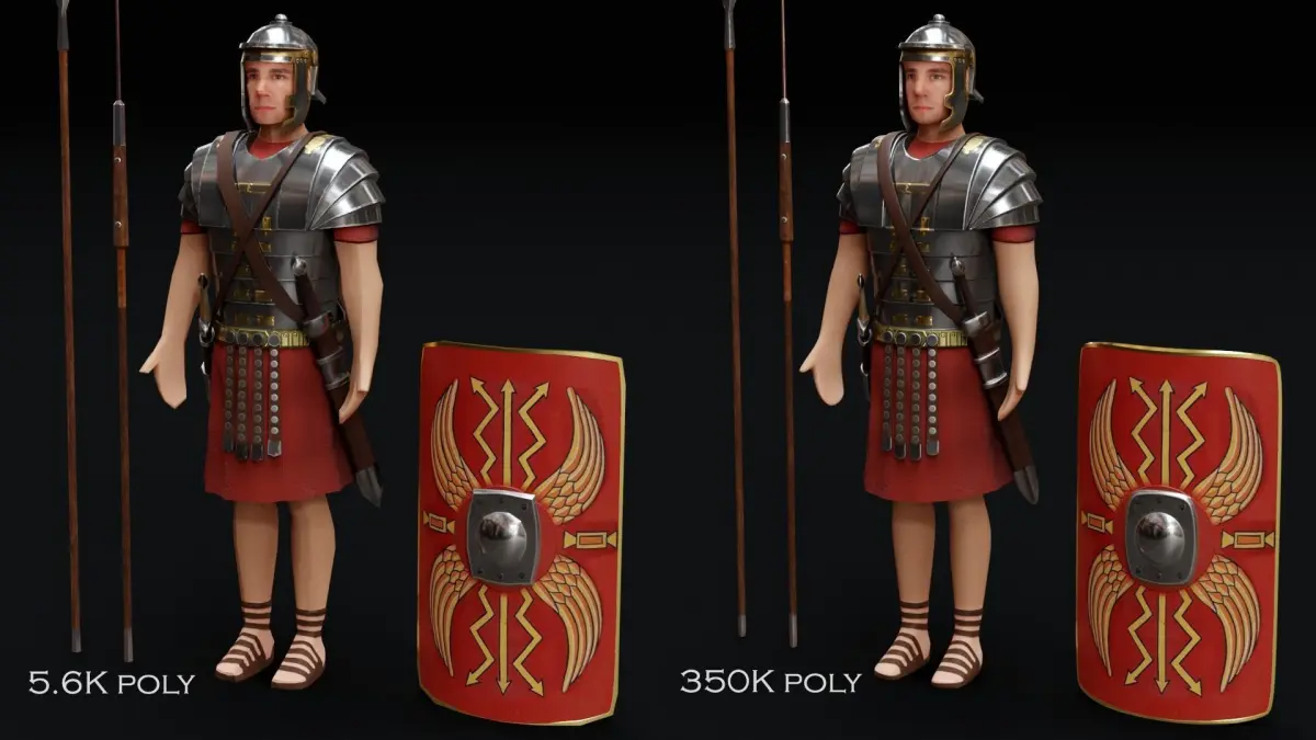 THIS MODEL CONTAINS:1 Low Poly Roman Soldier with spear, javelin, sword, dagger and shield1 Mid/High Poly Roman Soldier with spear, javelin, sword, dagger and shield1 Low Poly Roman Soldier in battle pose