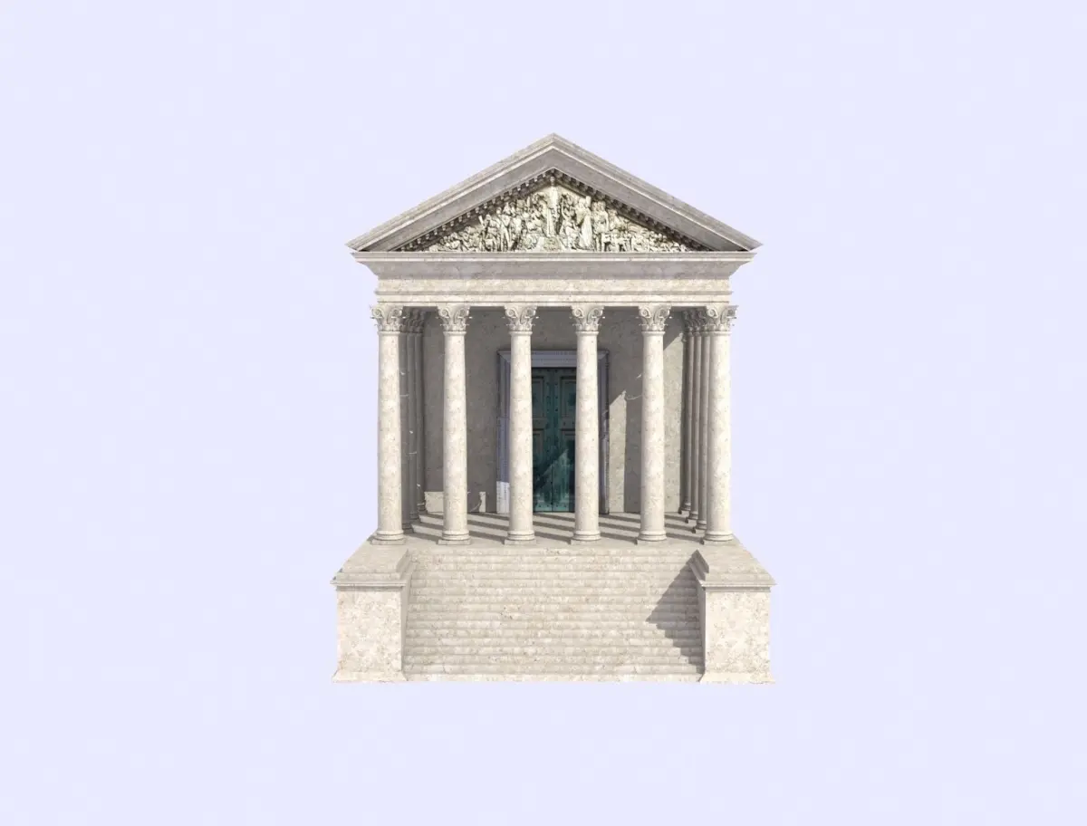 Recreation of a roman temple with a total of 26 corinthian columns. The model has been created from different plans and pictures of real temples. It has a total of 147000 polygons. It is ideal to be used in publicity or games.