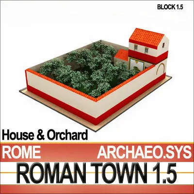 In the Package you will find:A- 1 typical Roman House with a typical Orchard [Plum Tree][1]B- 1 typical Town Pavement [2]C- 7 Plum-Trees [3]D- 3 Original Roman frescoes as wall decoration [4]E- Roof Displacement Ready System for the correct rendering of Roof and Tiles [5]F- 13 Hi-DEF Photoreal textures[3870x2386, 2048x2586, 2048x1688, 2048x1148, 1536x1191, 1024x731, etc.] [6]G- 6 Hi-DEF textures Templates for weathering and to customize the models [7]H- Formats available: Cinema4D, 3DS, OBJ, VUE.