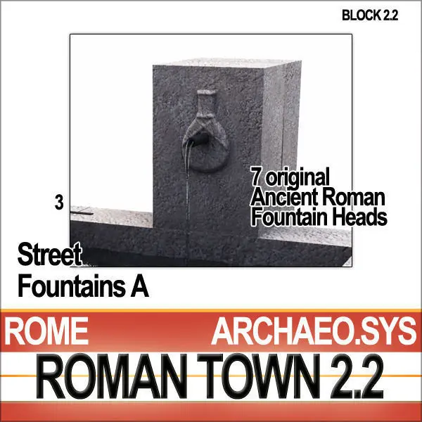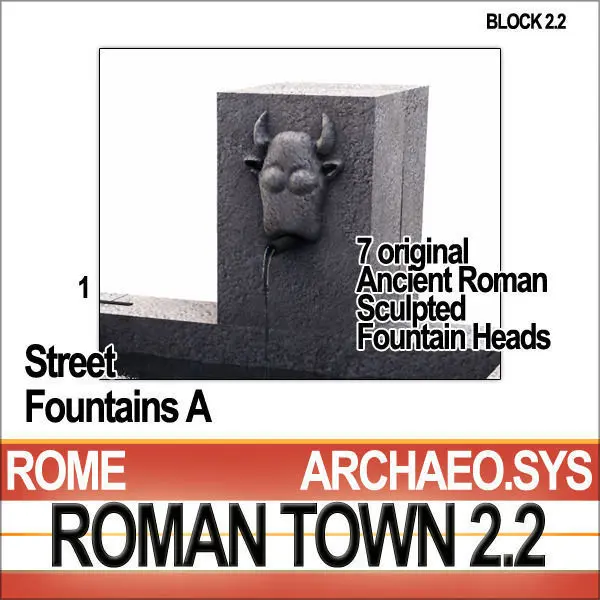 Faithful and accurate Reconstruction of an Ancient Roman Town Street Fountain with 7 original Roman Fountain Sculpted Heads [Pompeii Type] [Block 2.2], according to Scientific Data and Archaeological Evidence. 9 Textures, 2 HiDEF Templates. Lo-Poly._____________________________Faithful and accurate Reconstruction of an Ancient Roman Town Street Fountain with 7 different original Ancient Roman Fountain Sculpted Heads and 2 different sets of Stone Textures. [Pompeii Type] [Block 2.2]