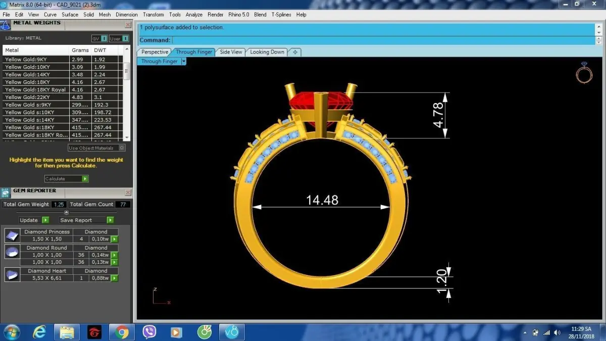The file includes accurate dimensions, gemstone sizes, and total metal weight, making it ideal for professional jewelry production and 3D printing. Suitable for crafting in gold, platinum, or silver with customizable gem colors.