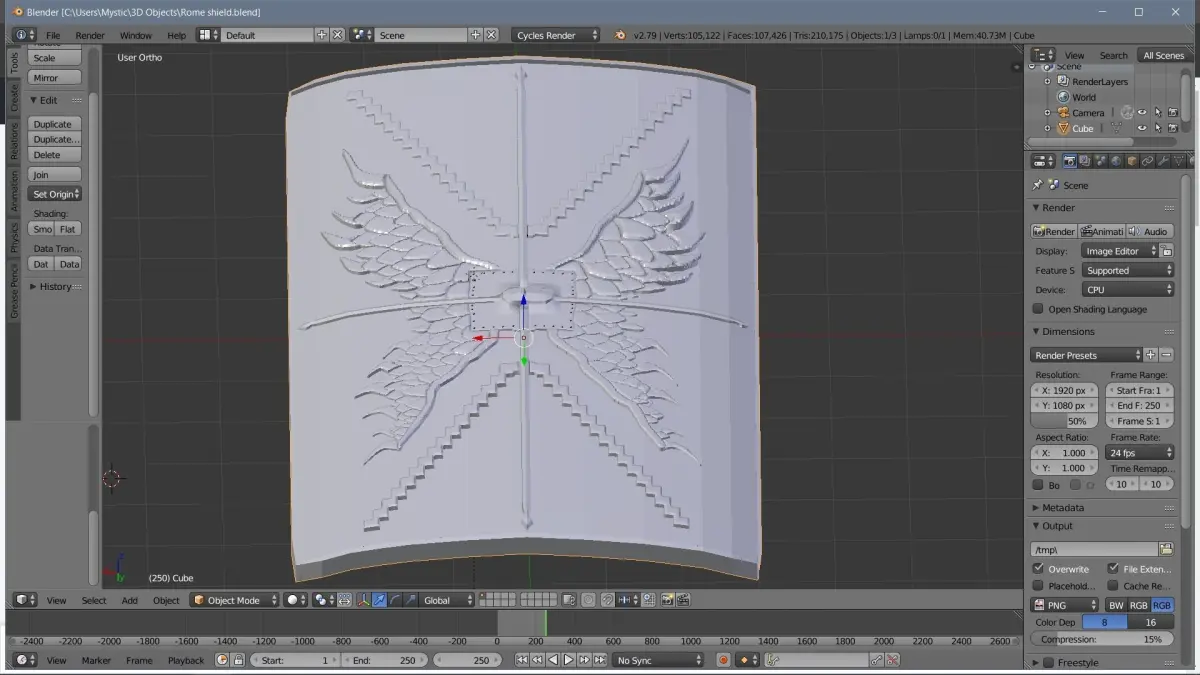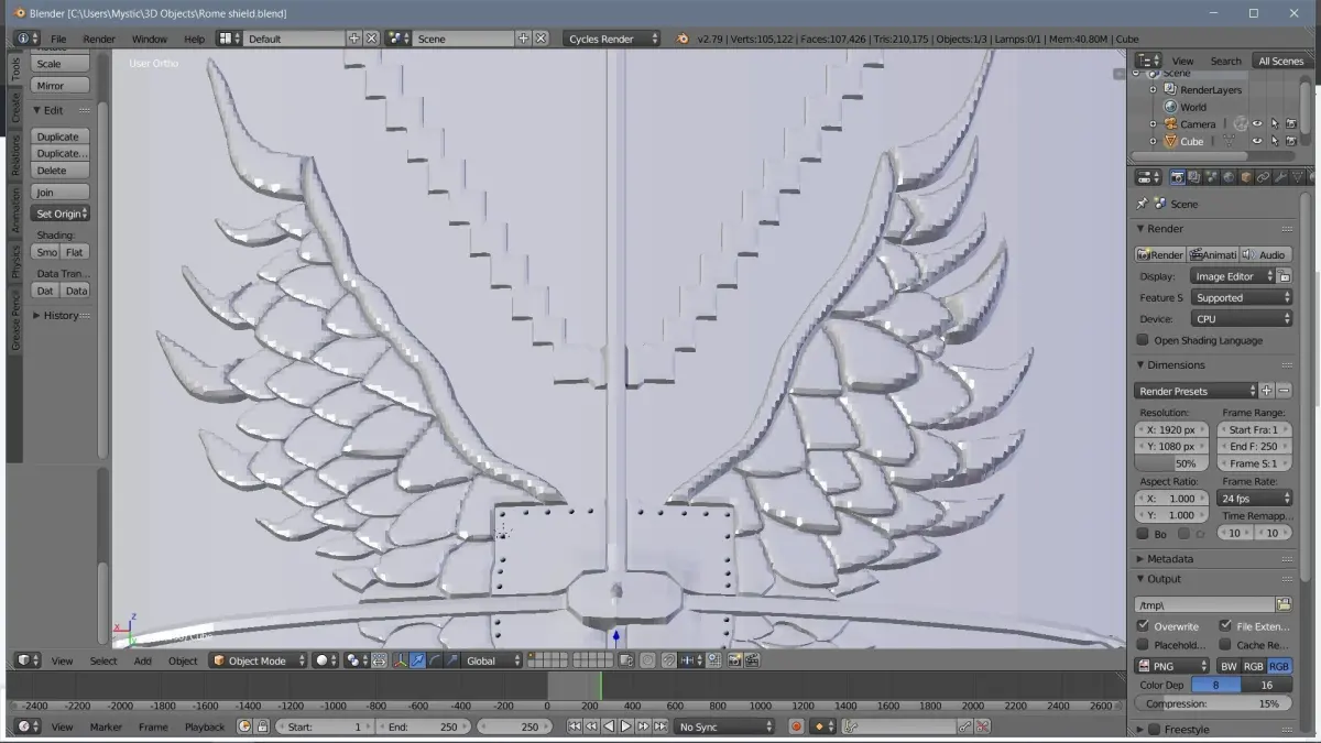 My first work on Blender. Wanted to start with not hard to creating objects. Can be printed like decoration on your wall or for Cosplay) Hope this model will be needed for someone)