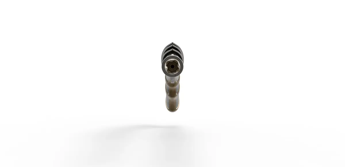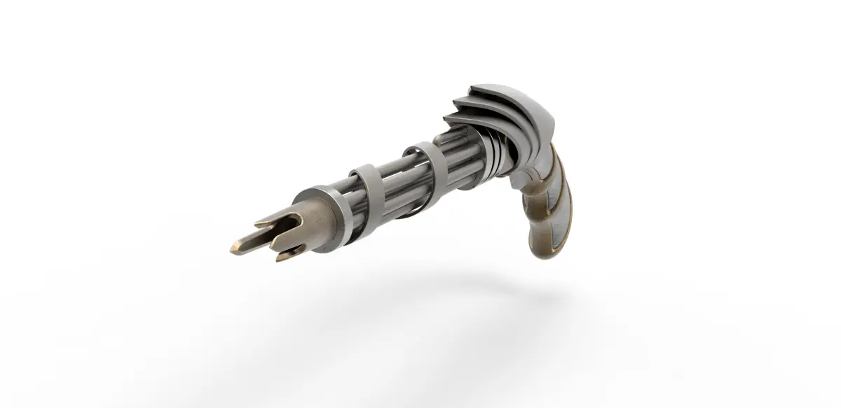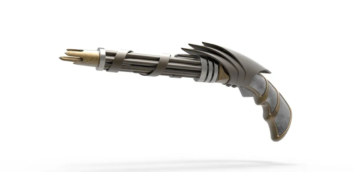 The model consists of parts: Barrel part 1-9, Body part 1,2, Handle, Left handle insert 1-3, Right handle insert 1-3, Rod, Screw cap insert 1,2, Trigger.