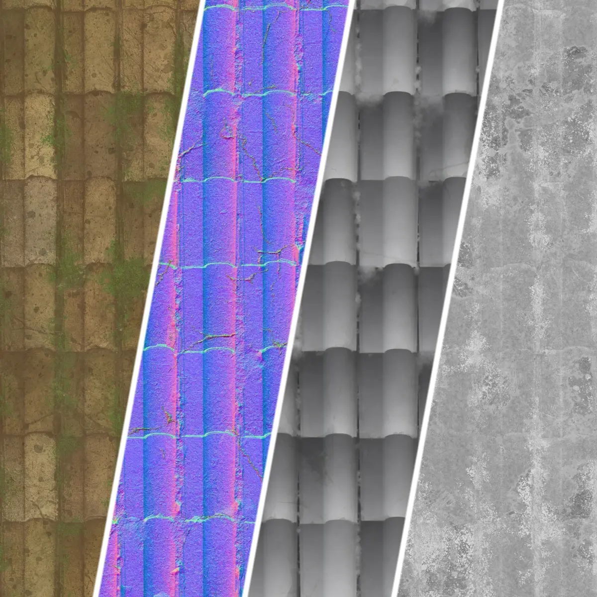 Roof Tile Materials 111- Concrete Roofing | Sbsar, Seamless, Pbr, 4k