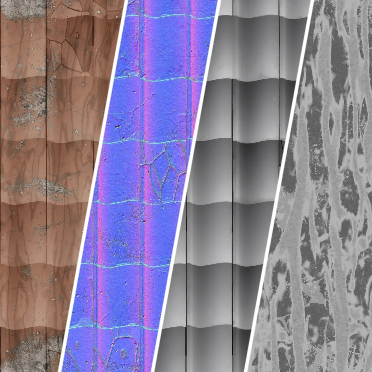 Sbsar File By control Height Size, resolution Output Texture, Color Materials, Change Type Roofing, Scratches And Damage Roof, Painting.