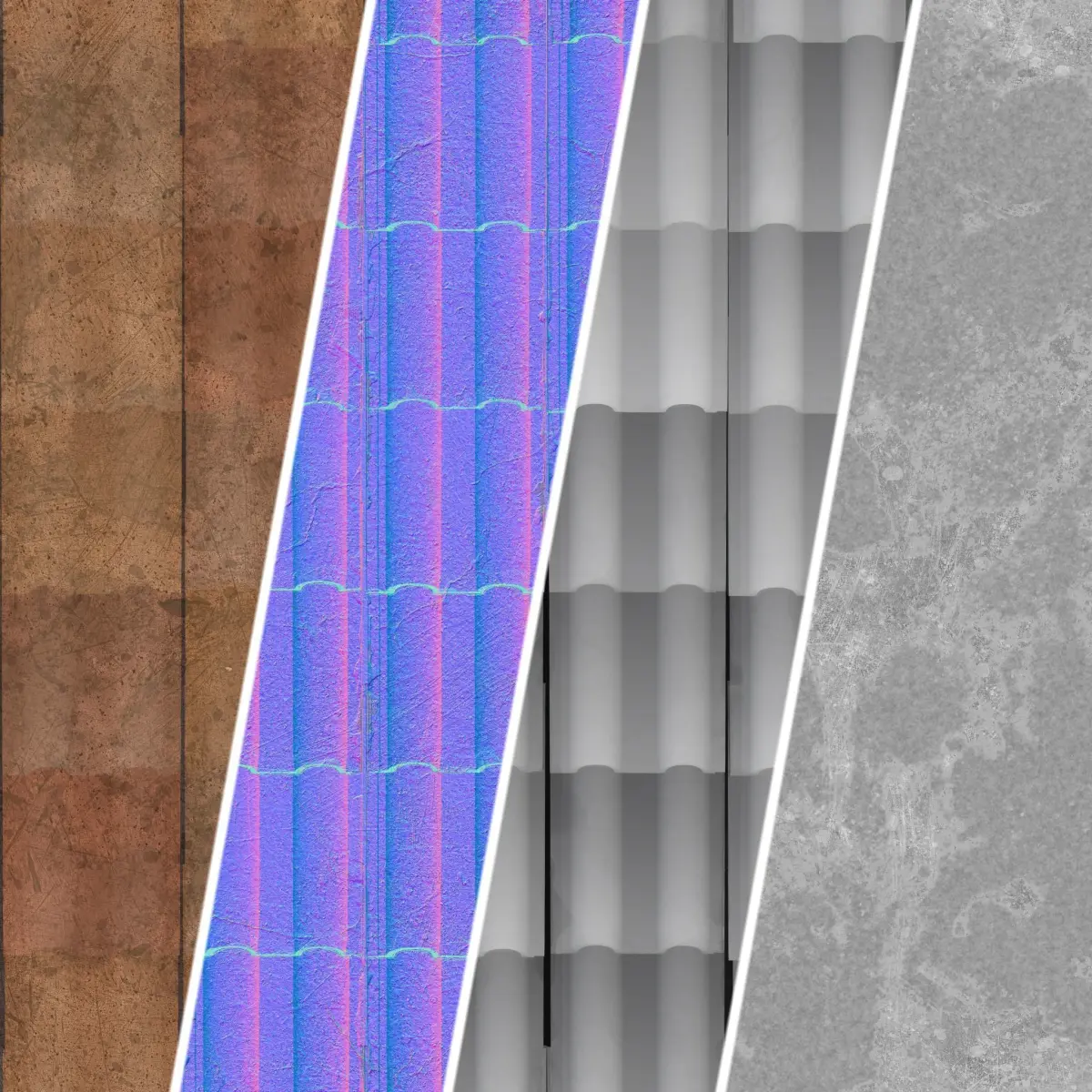 Sbsar File By control Height Size, resolution Output Texture, Color Materials, Change Type Roofing, Scratches And Damage Roof, Painting.